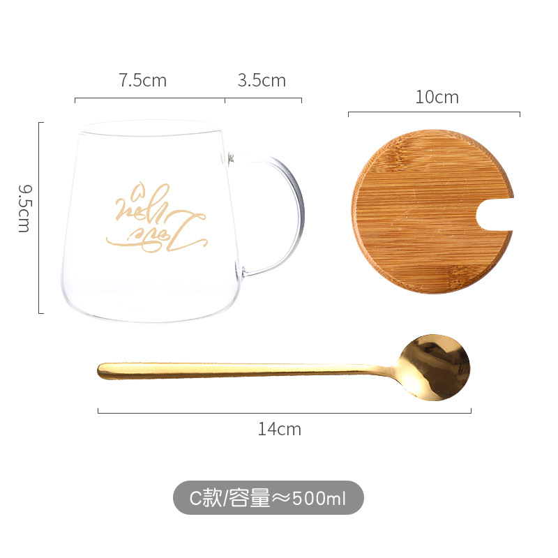 Creative glass breakfast cup, household milk cup with lid and spoon, high appearance level girls' glass water cup