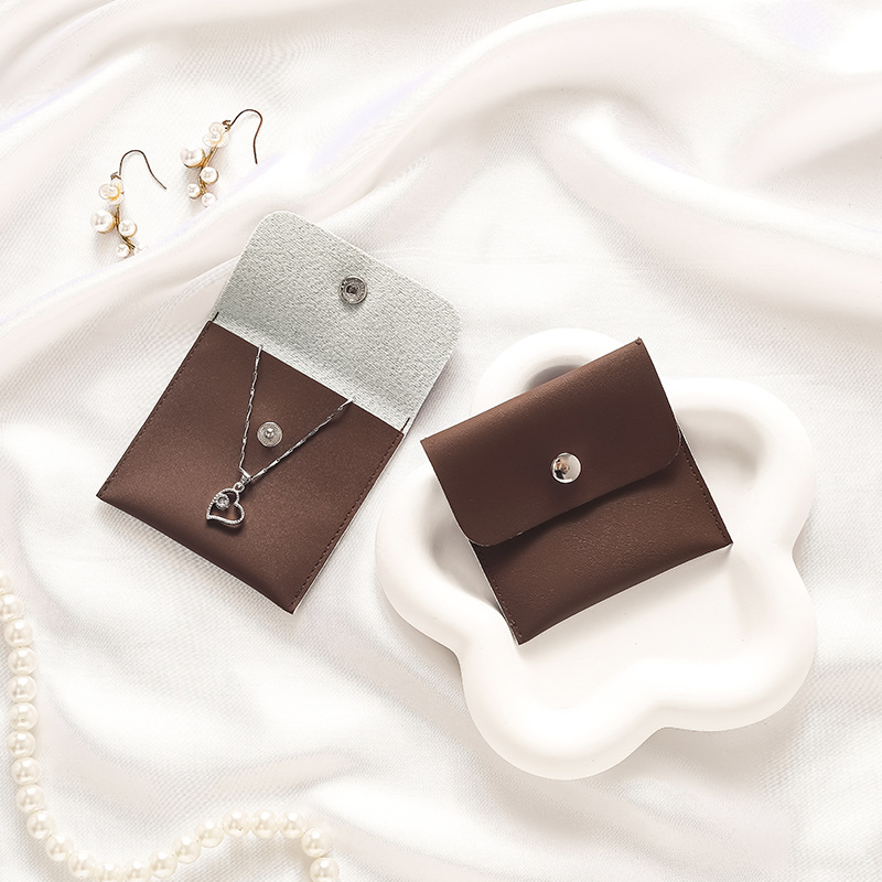 Coffee leather button jewelry bag 7.5 * 8 * 0.3 cm