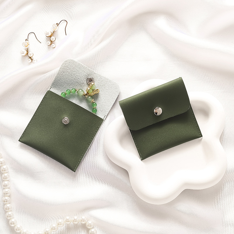 Green leather button jewelry bag; 7.5 * 8 * 0.3 cm