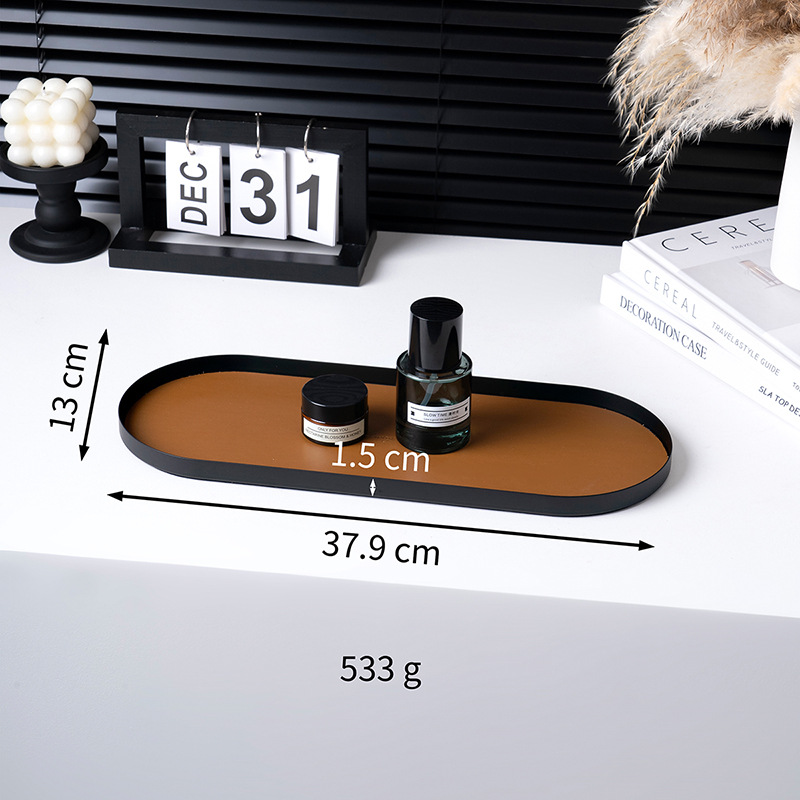 Creative metal ornaments, decorative trays, desktop ornaments, storage trays, entrance hall aromatherapy, oval leather storage plates