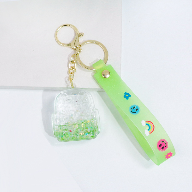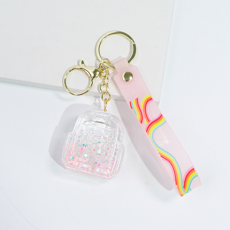 Creative oil-in-oil flowing sand schoolbags, keychains, pendants, couple fashion bags, key chains, exquisite and cute gifts wholesale