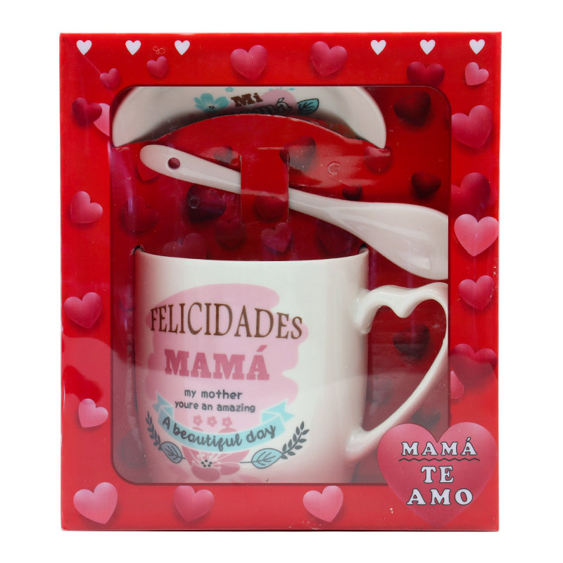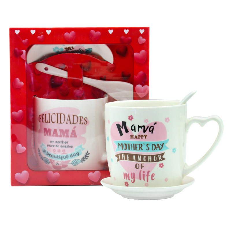 Creative, simple and fresh pattern design, cross-border exclusive for foreign trade, Spanish Mother's Day gift, ceramic mugs, coffee cups, cups, spoons, plates, milk breakfast cups, Women's Day mom gifts, support customer logo, factory direct supply