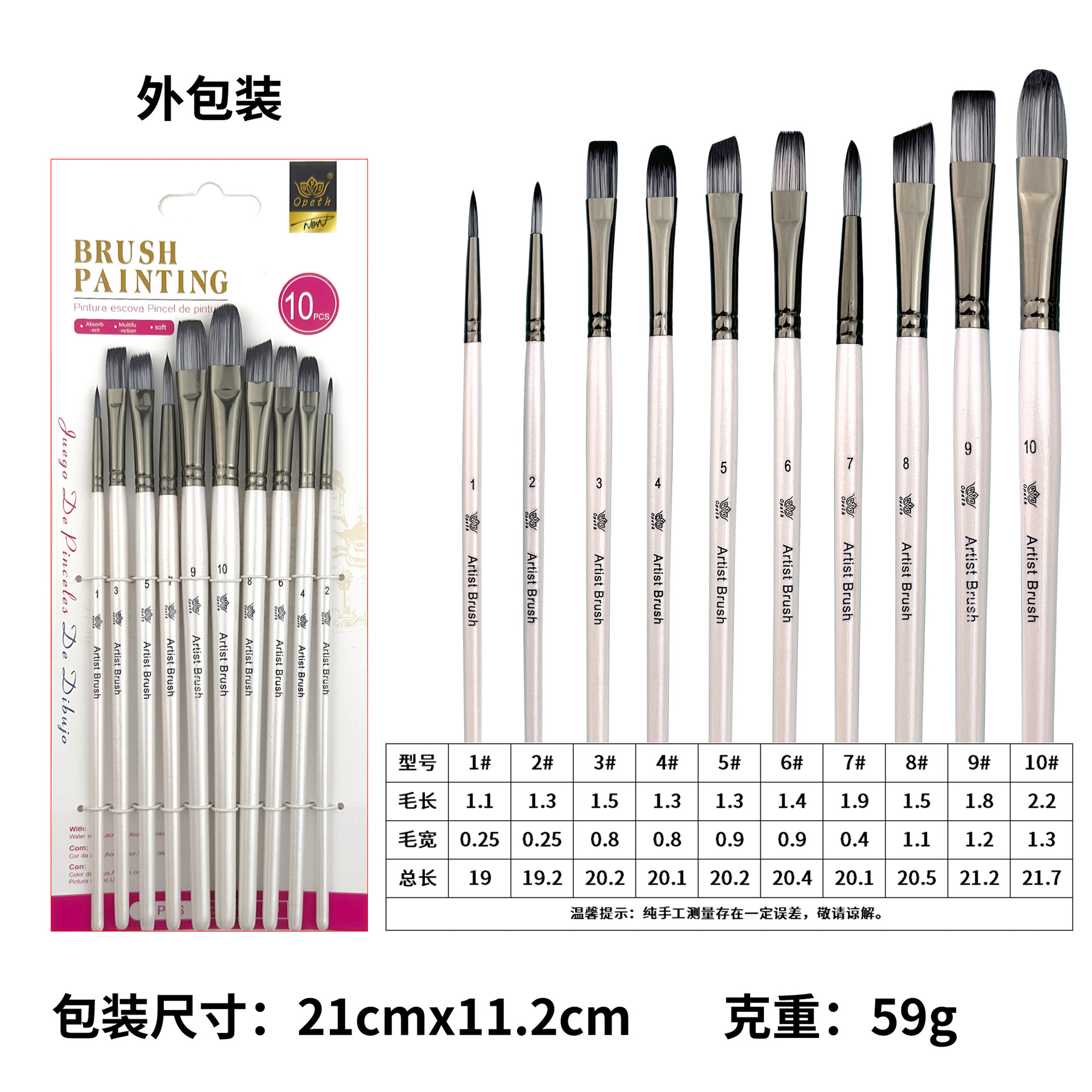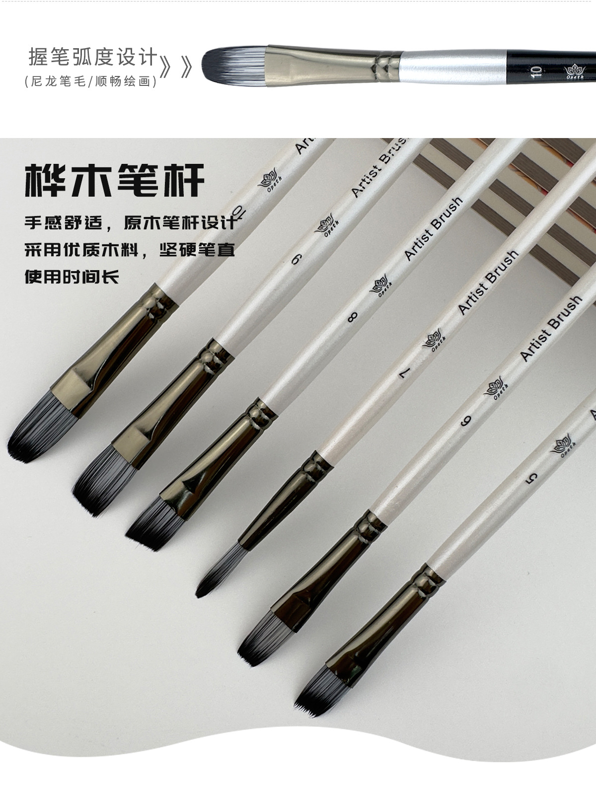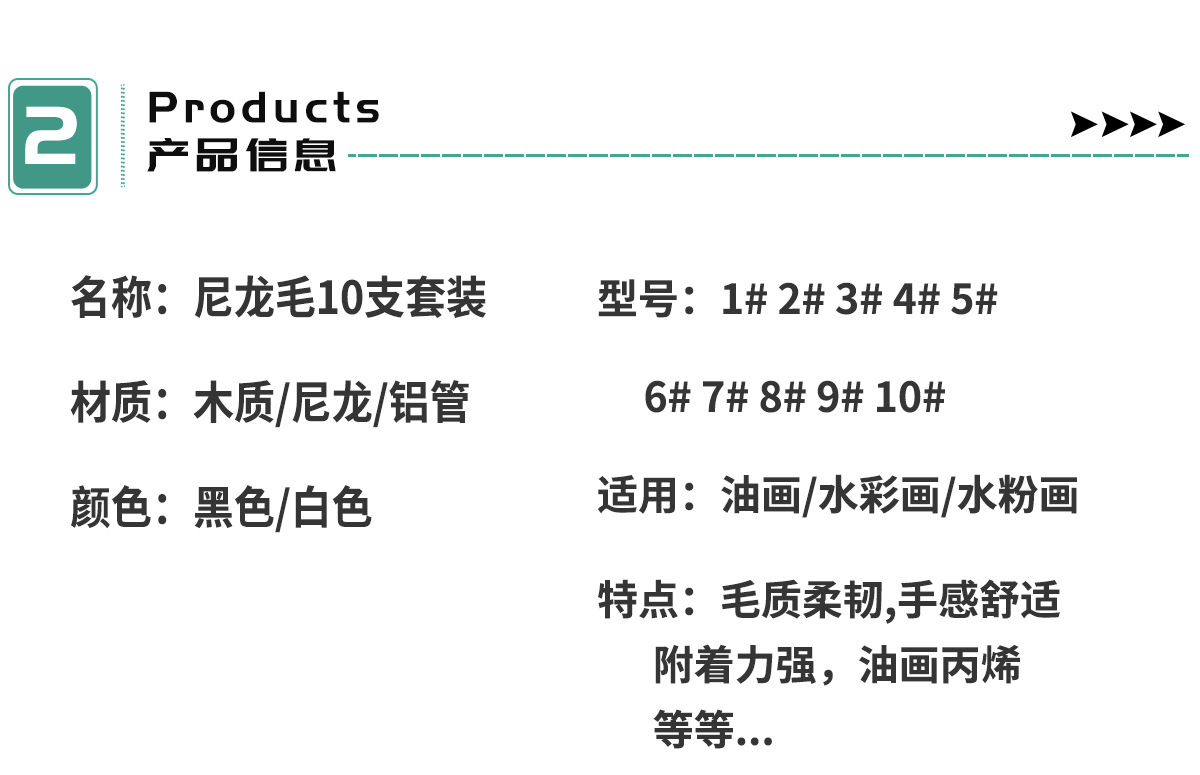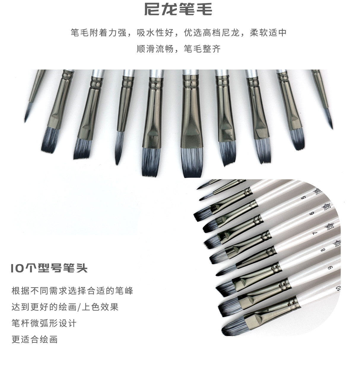 Cross-border 10-piece pearlescent White student painting set, two-color nylon brush, children's watercolor outlining oil painting brush