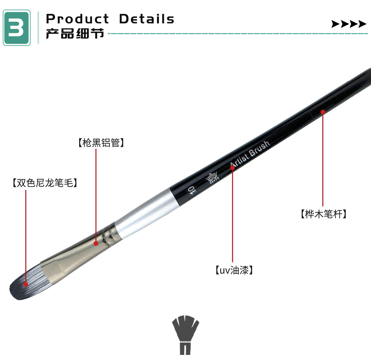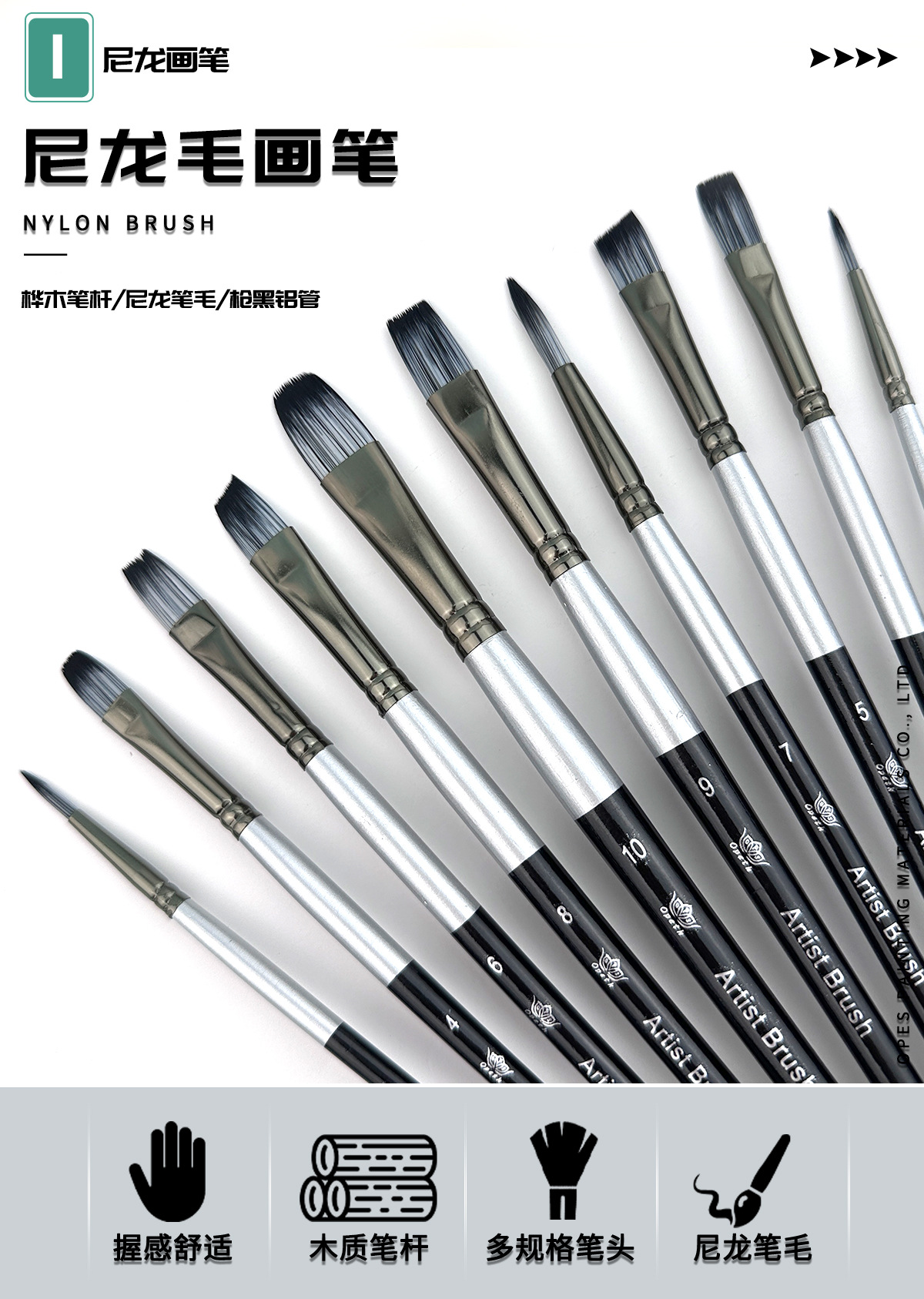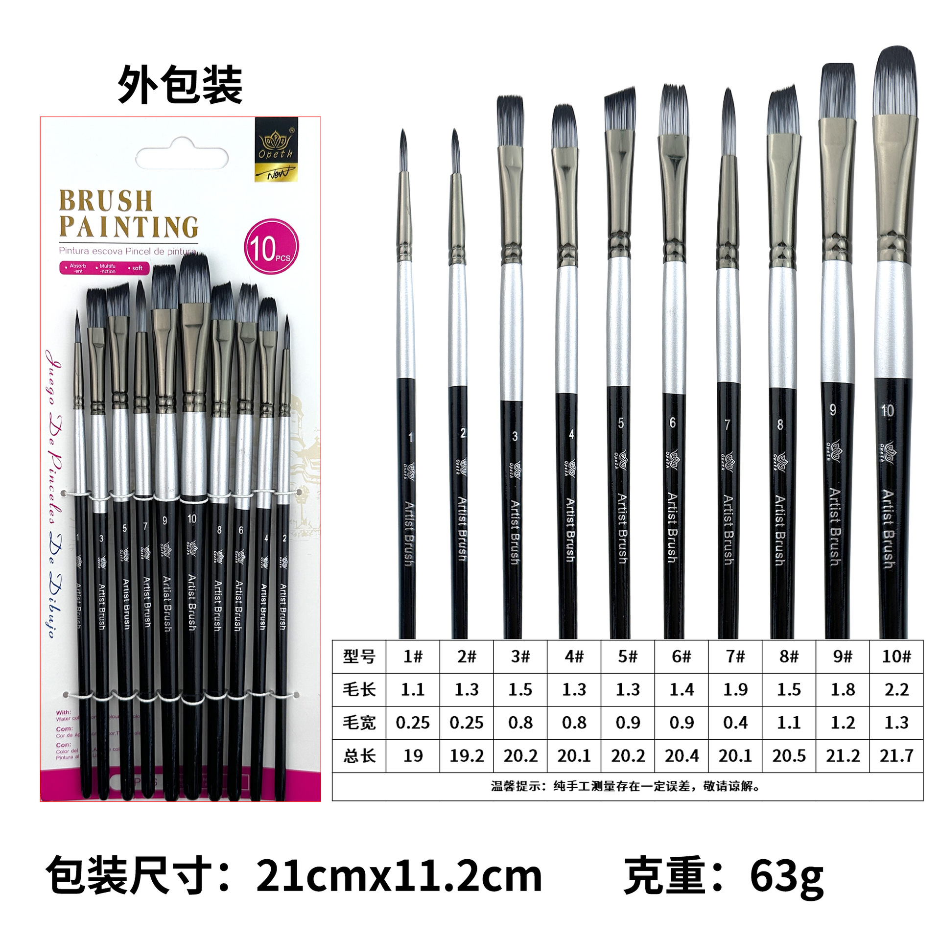 Cross-border 10-piece pearlescent White student painting set, two-color nylon brush, children's watercolor outlining oil painting brush