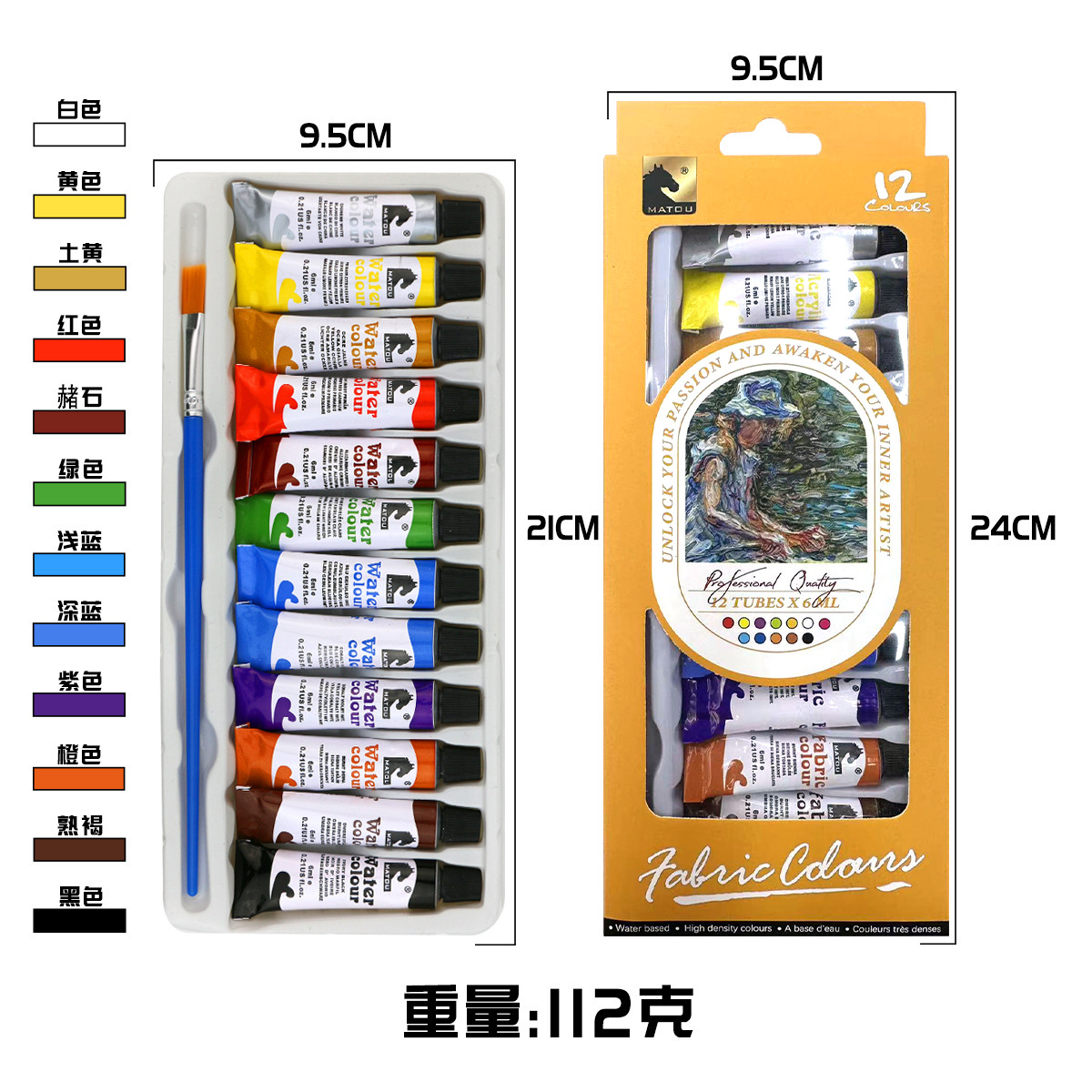 Cross-border 12-color paint set 6ml acrylic gouache Watercolor Glass Textile Fiber Painting Graffiti Paint