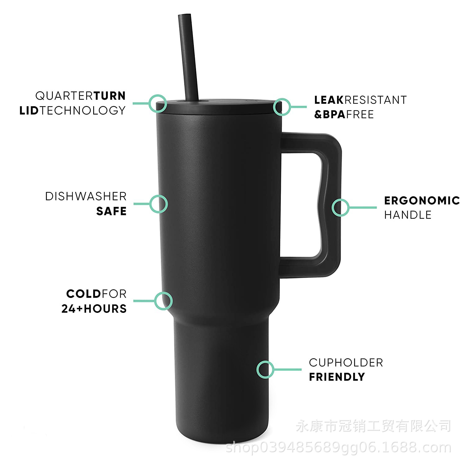 Cross-border 304 stainless steel leopard print 40oz ice cup with handle and straw, high appearance level, car large-capacity insulated cup