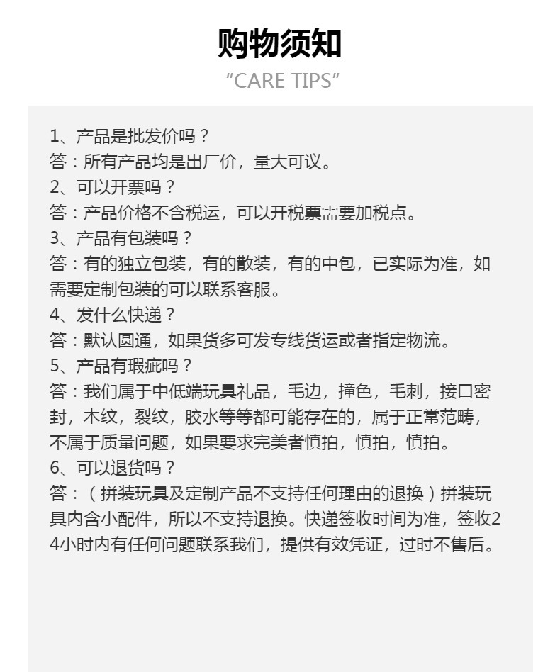 Yulu Toy Factory is an Alibaba supplier and a major online seller in the toy industry. We are a reliable business partner for you. Wholesale is completely different from retail on Taobao. Therefore, in order to make your transaction process smoother and more unobstructed, and to protect the rights and interests of both buyers and sellers, please read the following rules carefully before purchasing our company's products. This may take you a few minutes, but it can effectively avoid unnecessary troubles for both of us. The specific rules are as follows: |