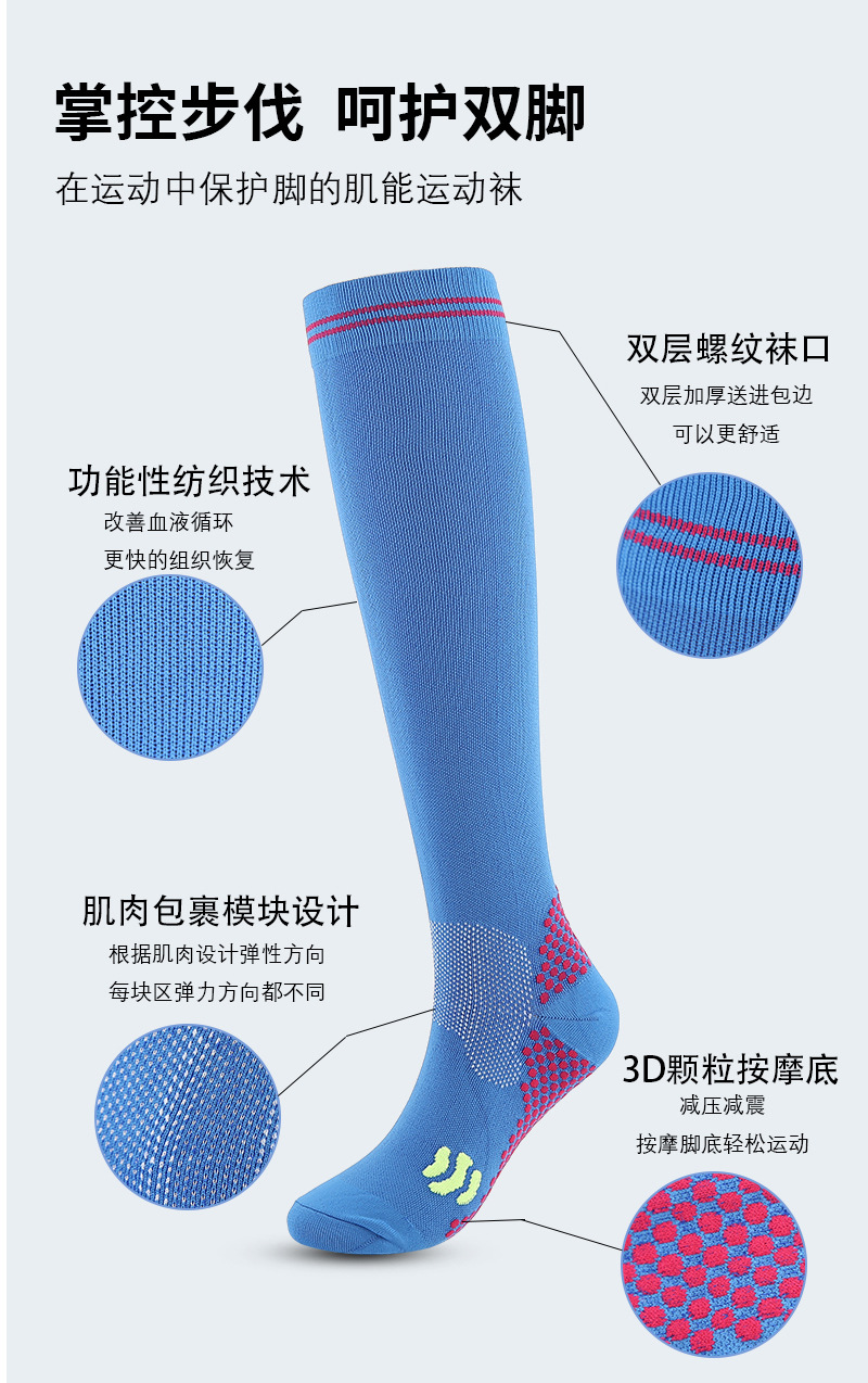 Cross-border Amazon sports pressure socks, long fitness outdoor running and cycling socks, men's and women's leg beauty socks, compression socks