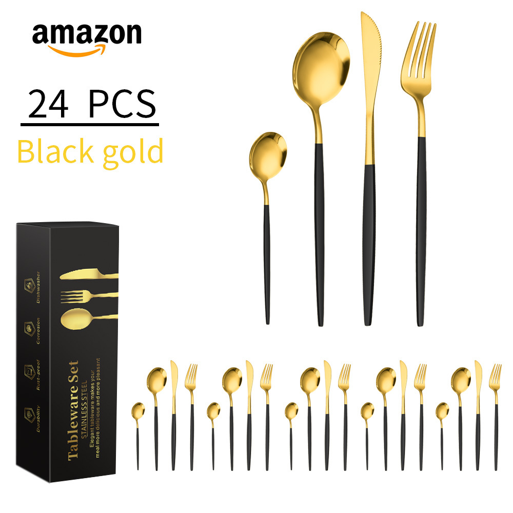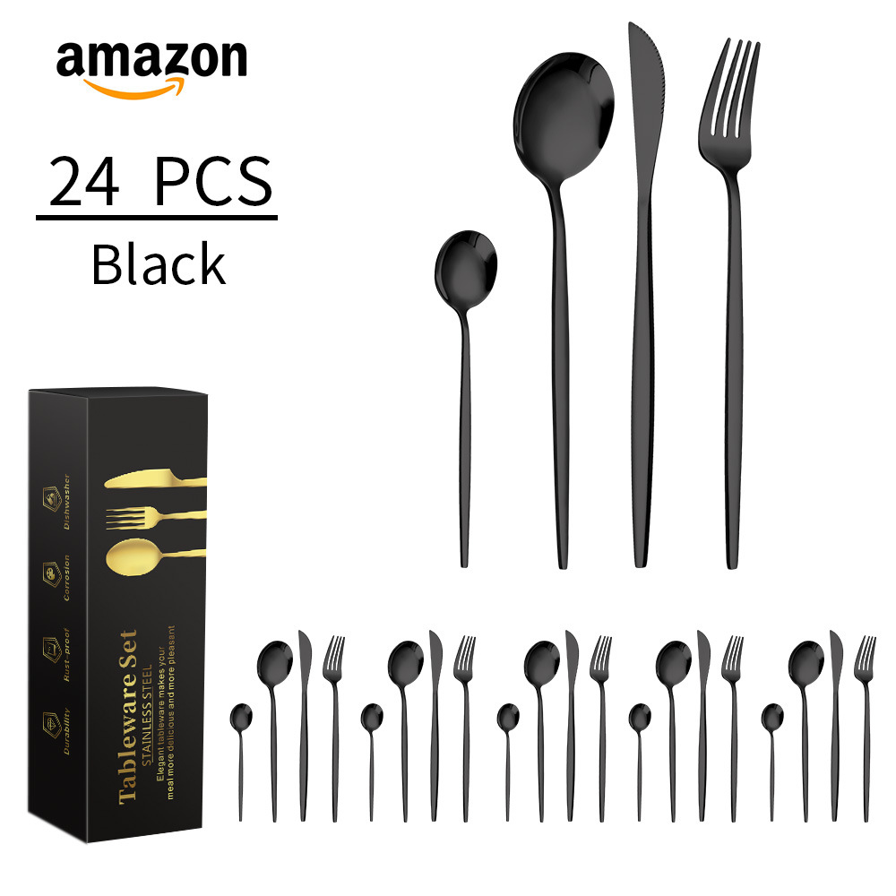 Cross-border Amazon stainless steel tableware 4-piece set of knife, fork and spoon, Portuguese Western cuisine steak knife, fork and spoon 24-piece set