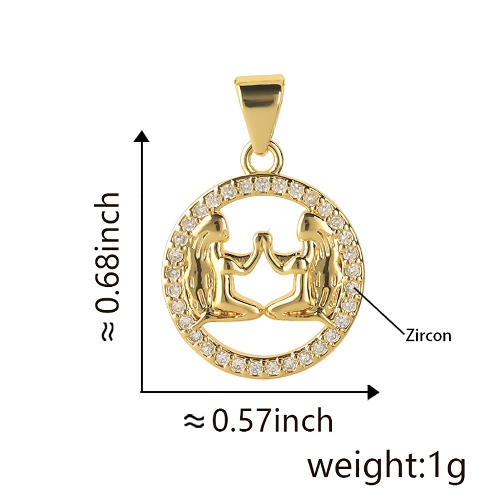 Cross-border best-selling 12 zodiac pendant, micro-inlaid zircon copper plated with 18k real gold color retention electroplating, creative retro pendant