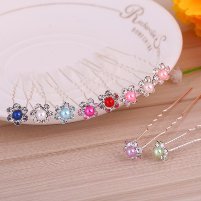 Cross-border best-selling hair accessories: Full diamond U-shaped hair combing accessories, updo hair, pearl flower and diamond hair hairpins, bride hair clips
