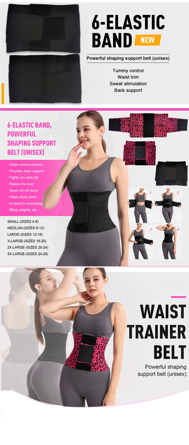 Cross-border best-selling leopard print belly tightening belt, waist training belt, sports waist support and restraint belt, women's elastic elastic plastic waist belt