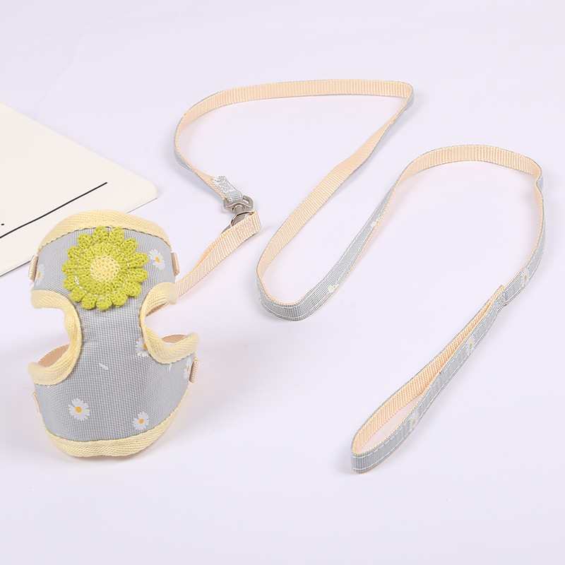 Cross-border best-selling sweet little flower dog leash, trendy vest style dog leash, comfortable and breathable pet products