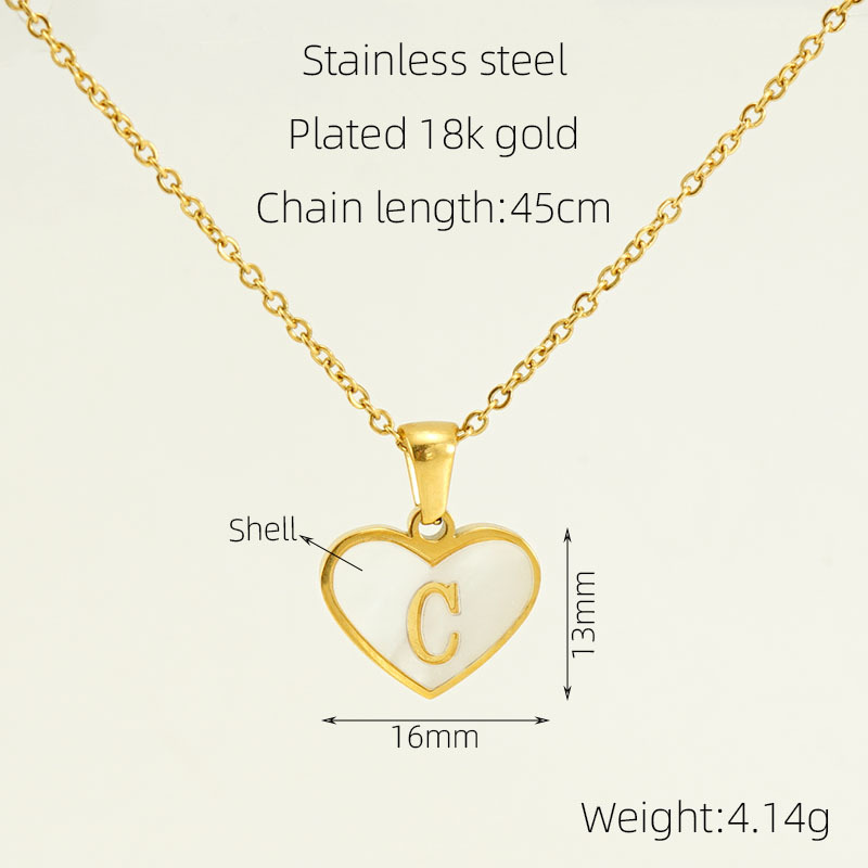 Cross-border bestseller: 26-letter heart-shaped shell necklace, a versatile stainless steel letter pendant for women with a European and American style