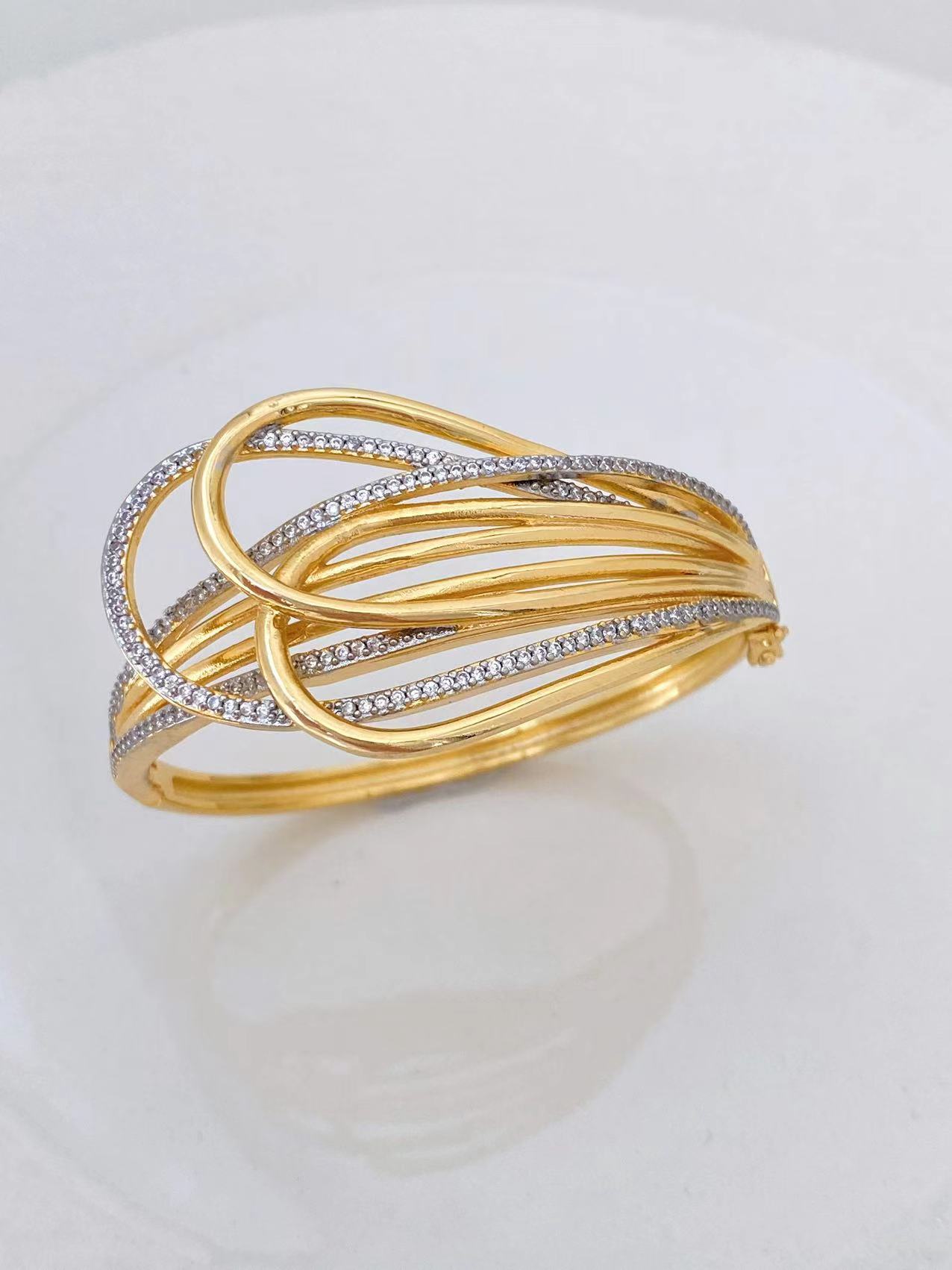 Cross-border bestseller copper zircon 18K gold electroplated bracelet, ring, earring, necklace set, personalized, fashionable, simple and versatile