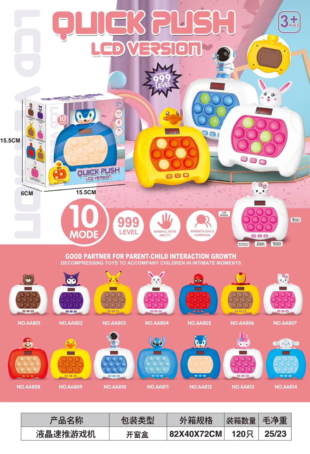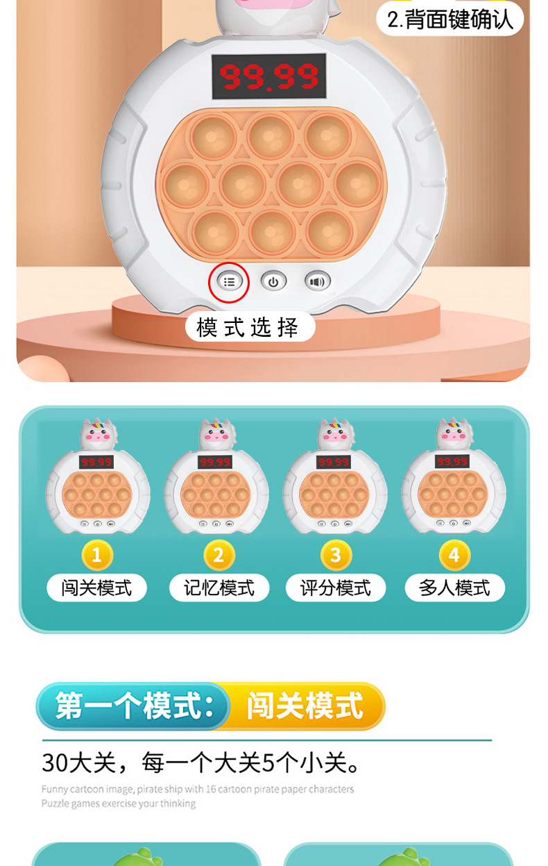 Cross-border bestseller Quick Push: Match-3, stress-relieving game console, Whack-a-Mouse Challenge, Press and Play, electric children's educational toys