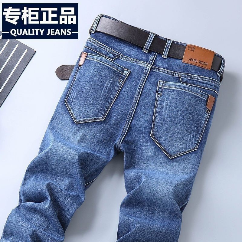 Cross-border bestsellers: Men's middle-aged and young casual denim long pants, straight-leg stretch and durable workwear men's pants, a trend