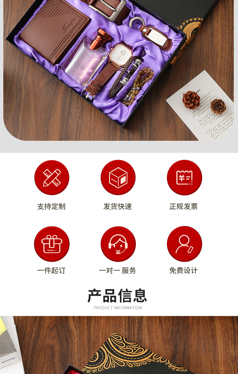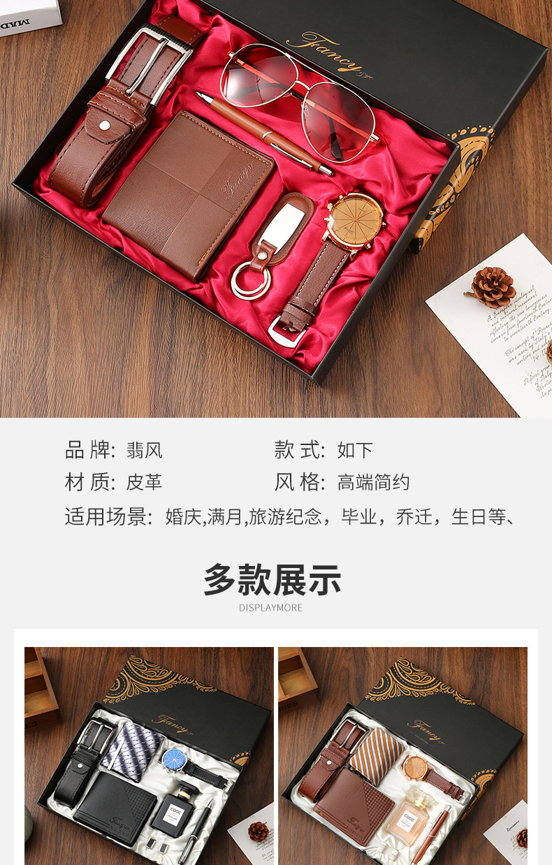Cross-border business gift set, high-end men's wallet, card case, belt, watch gift box, Teachers' Day gift and souvenir