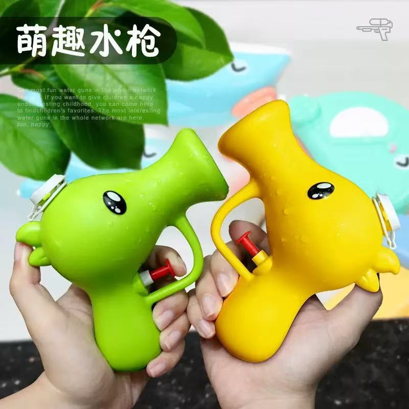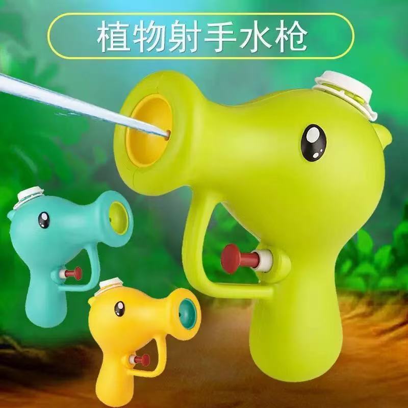 Cross-border cartoon pea archer shaped press-type small water gun, children's beach outdoor hand-held water gun toy, plant water gun toy, water play toy, pea water gun, children's summer outdoor water gun