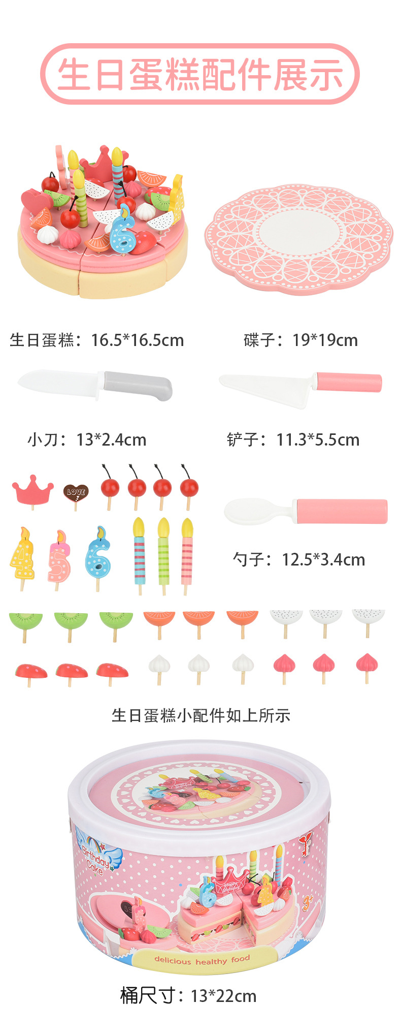 Strawberry Double-layer Cake Pink - Bucket: Packaging size 1.25kg/22*22*13cm, outer box size 8 pieces /44.5*45.5*28cm/ gross weight 10kg, net weight 9kg