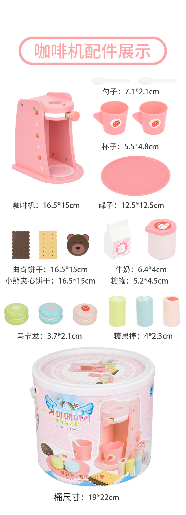 Strawberry coffee machine Pink - Bucket: Packaging size 0.83kg/22*22*19cm, outer box size 8 pieces /44.5*45.5*40cm/ gross weight 6.7kg, net weight 5.7kg