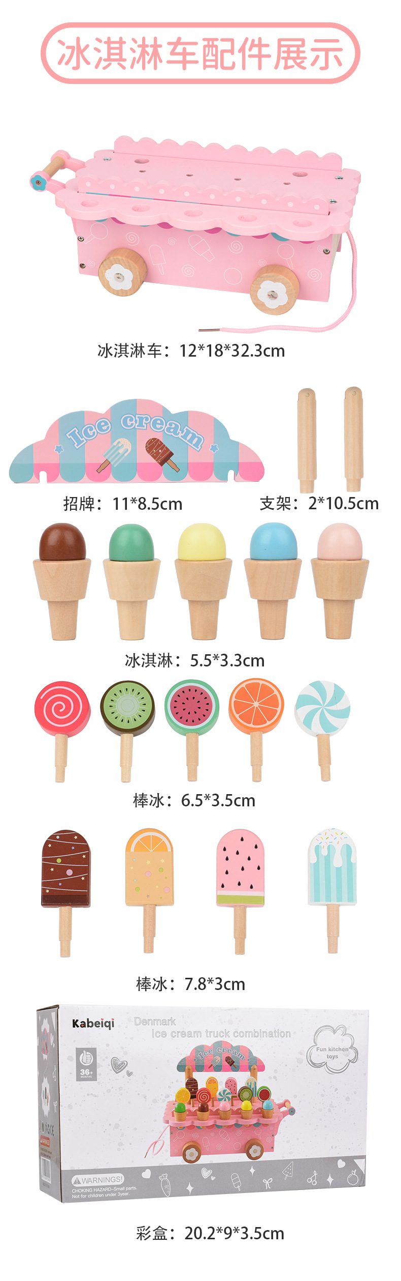 Ice cream truck Pink - Color box: CPC/CE/EN71, packaging size 1.28kg/30*9*17cm, outer box size 20 pieces /61*48*36cm