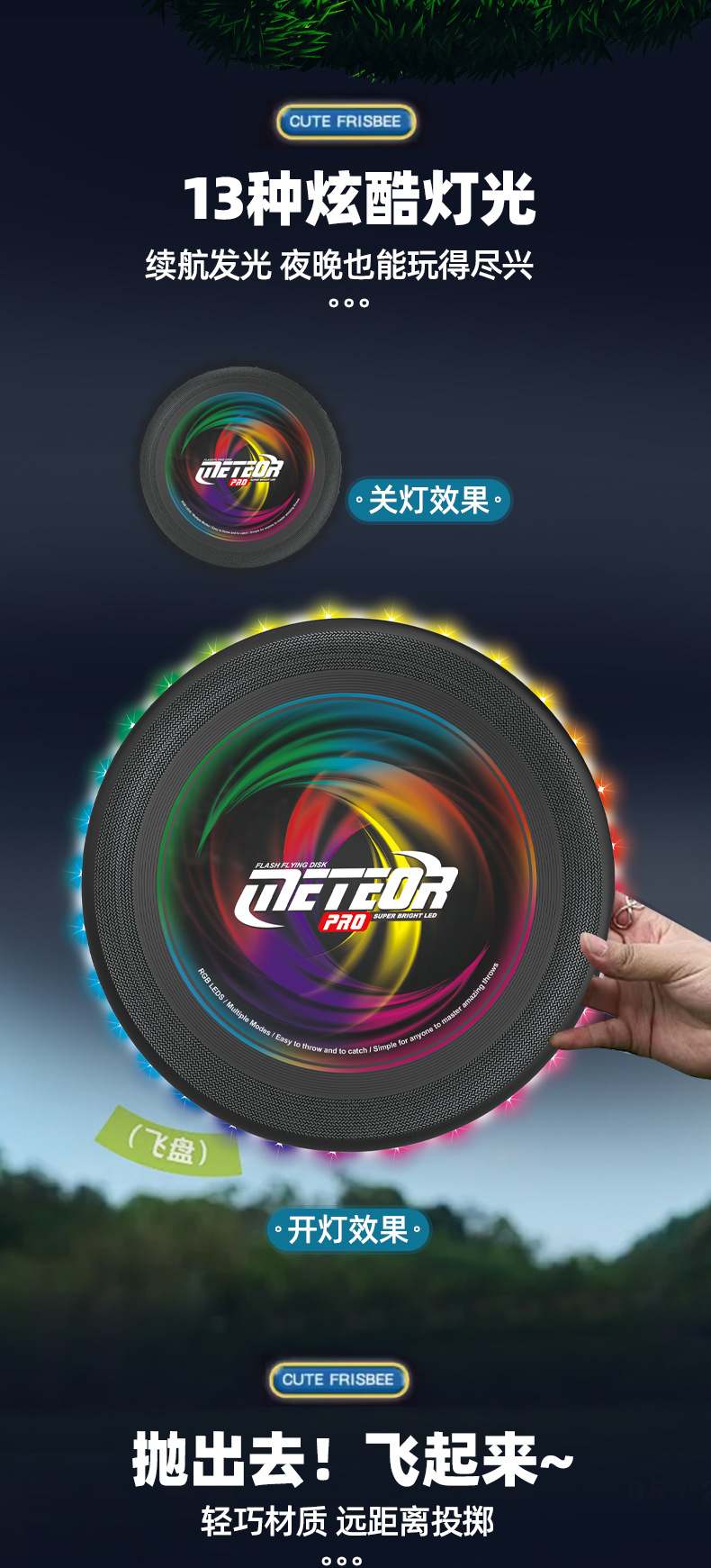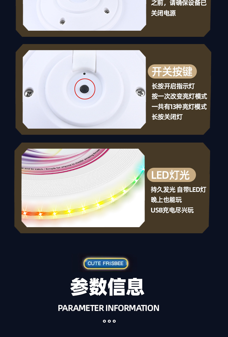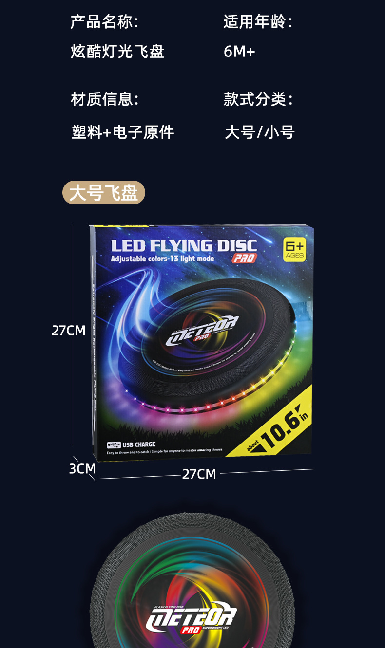 Cross-border children's outdoor plastic frisbee, spinning hand throwing toys, pet light flying saucers, parent-child interactive sports toys