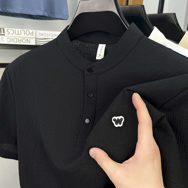 Cross-border cotton and linen Chinese-style stand-up collar men's polo shirt 2025 Summer new style Middle-aged thin breathable short-sleeved men's T-shirt