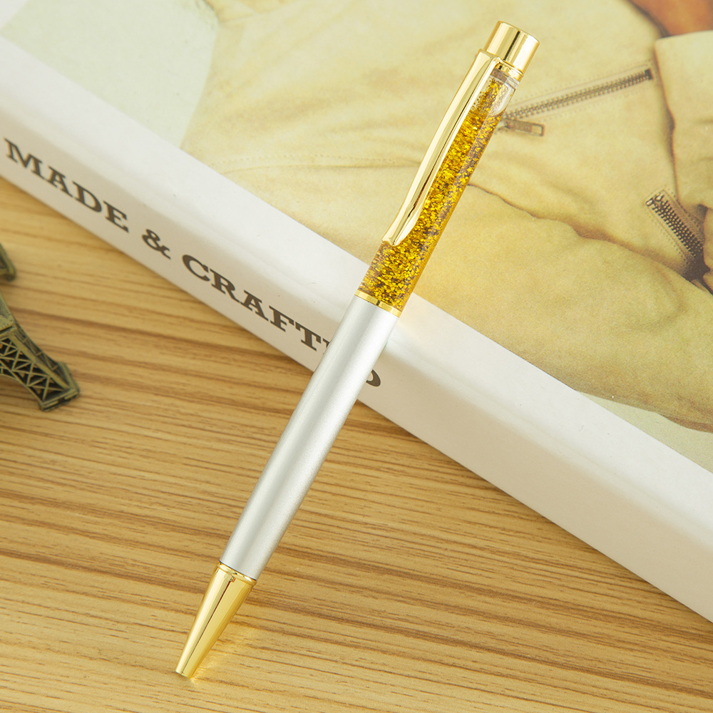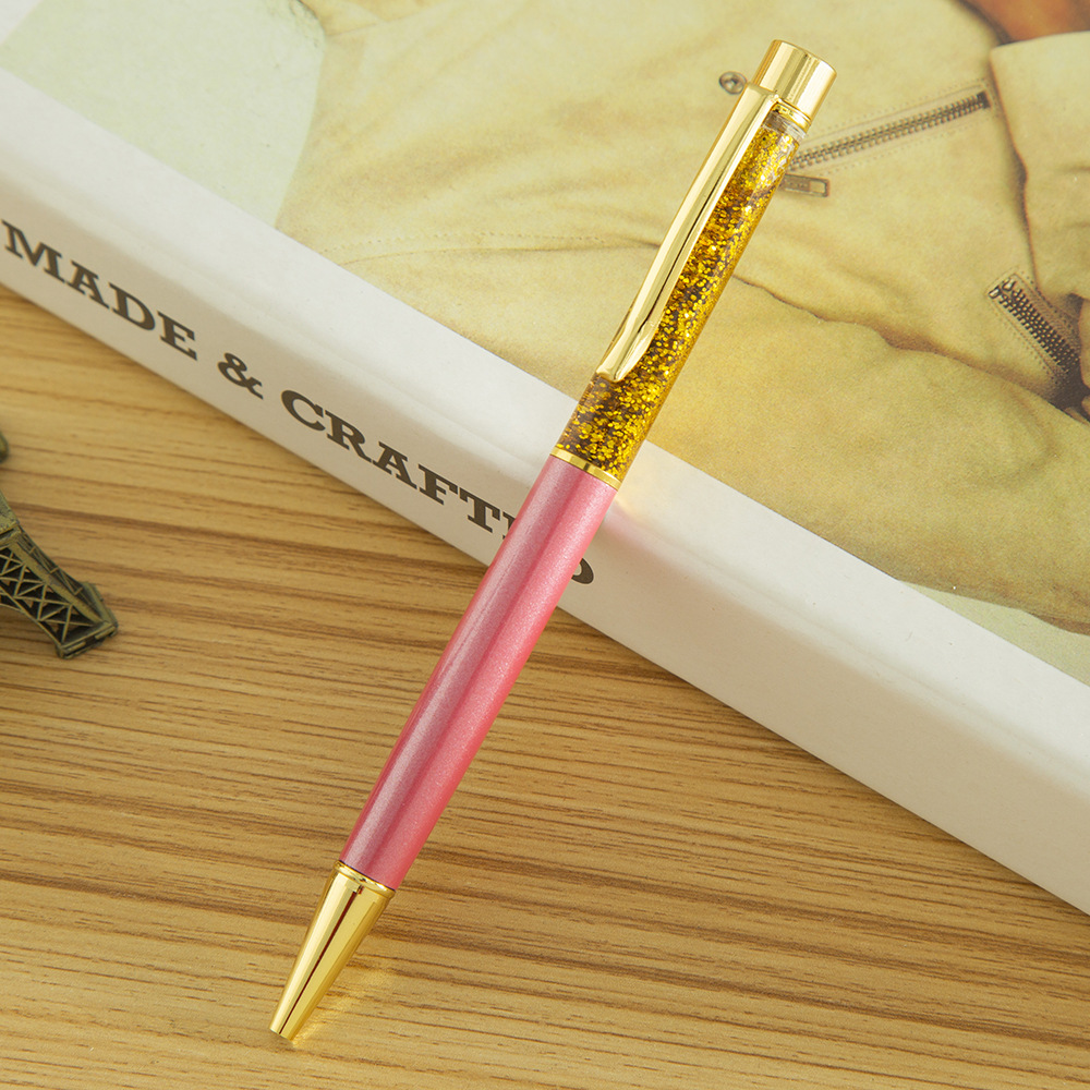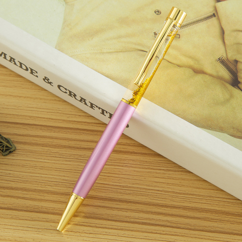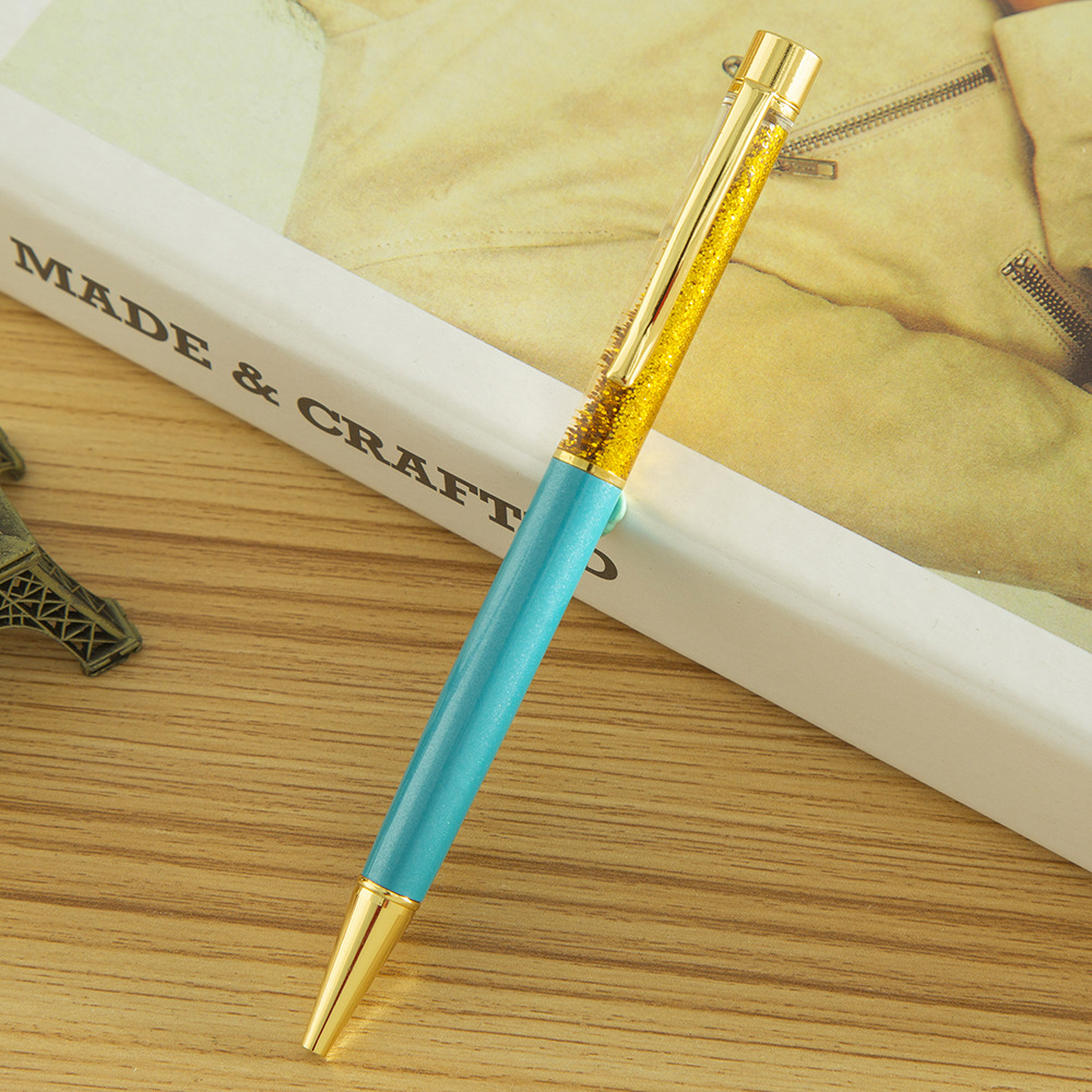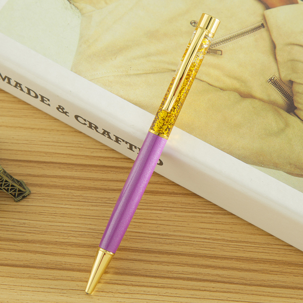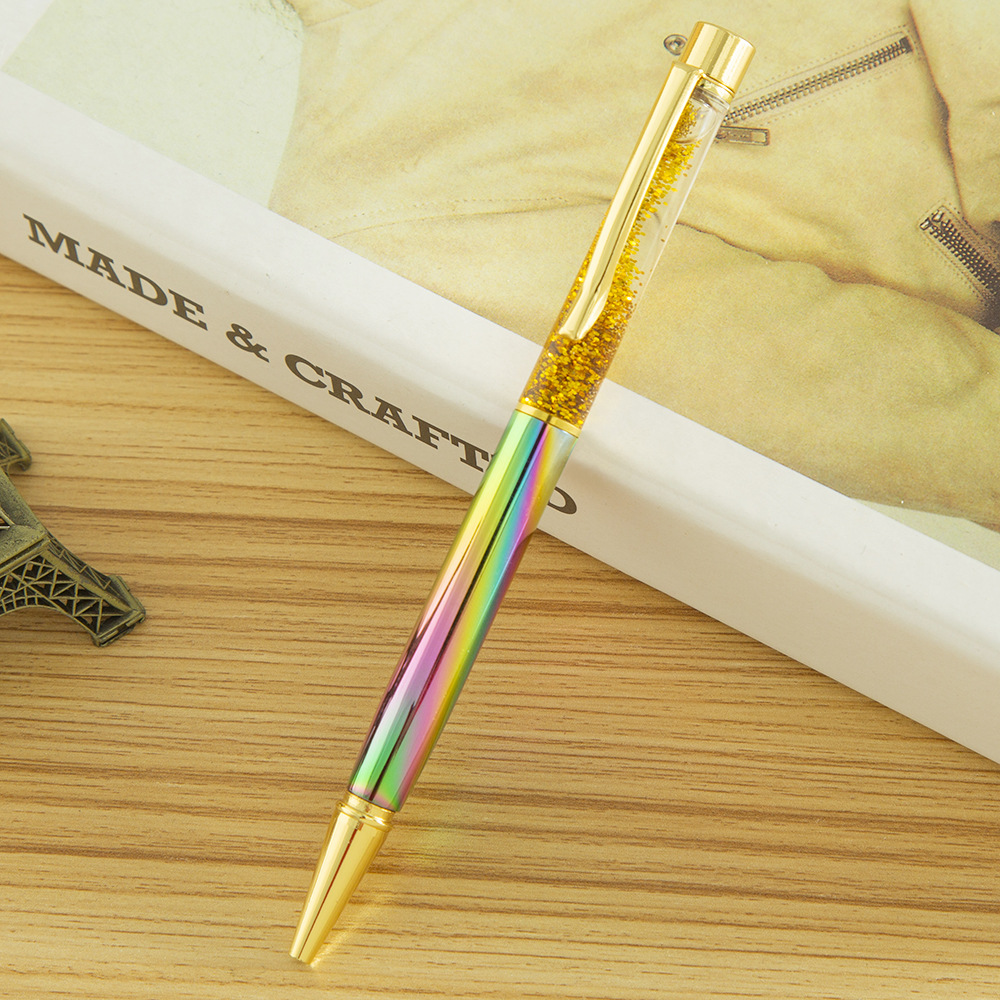 Cross-border creative gold powder into oil pens, colorful flowing sand pens, metal empty tube pens, gift advertising pens