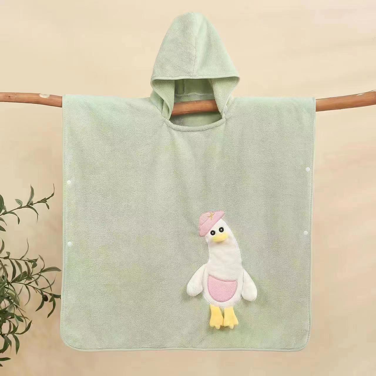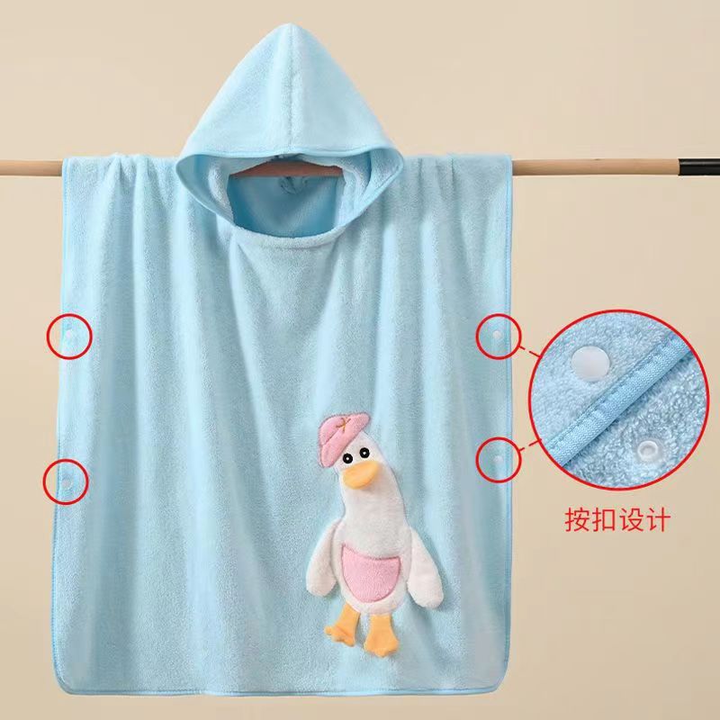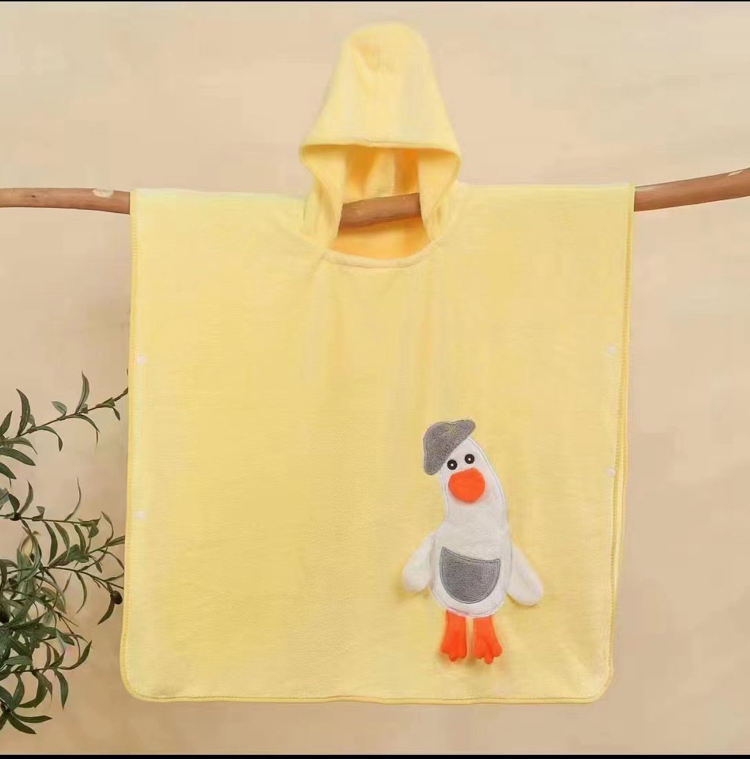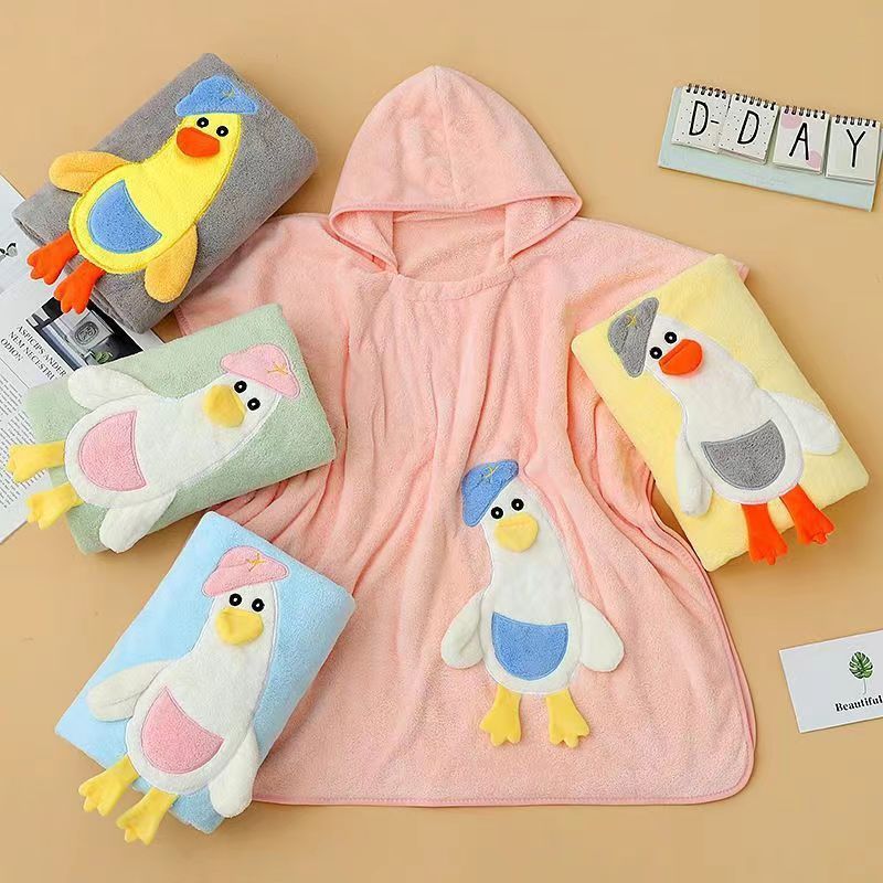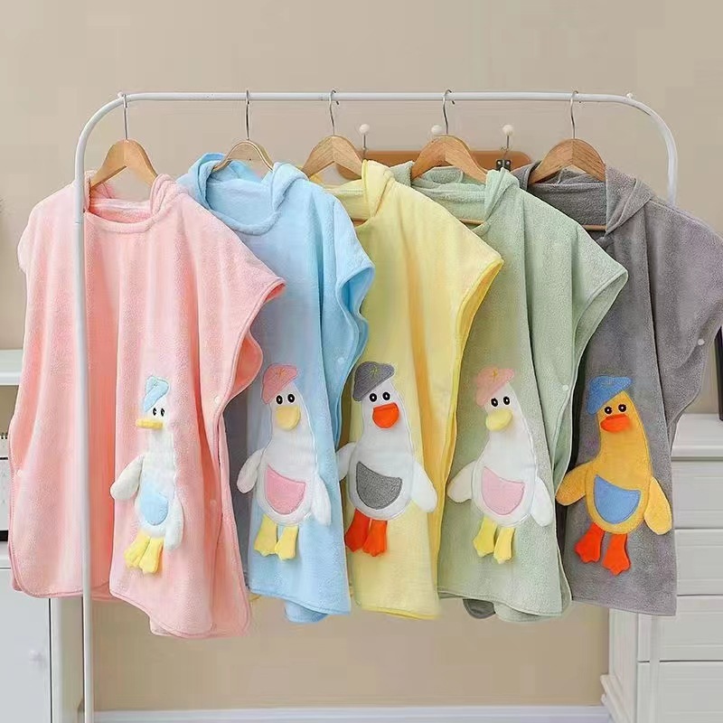 Cross-border cute duck children's bathrobes, coral fleece cartoon cape bath towels, baby girls' bath towels, cape bathrobes