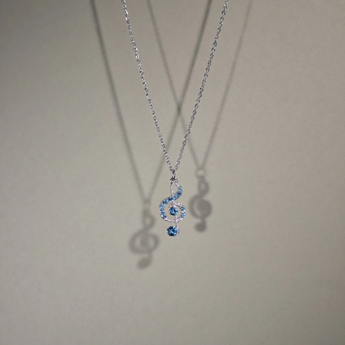 Cross-border e-commerce Vintage Blue note girls' necklace titanium steel rhinestone note pendant collarbone chain