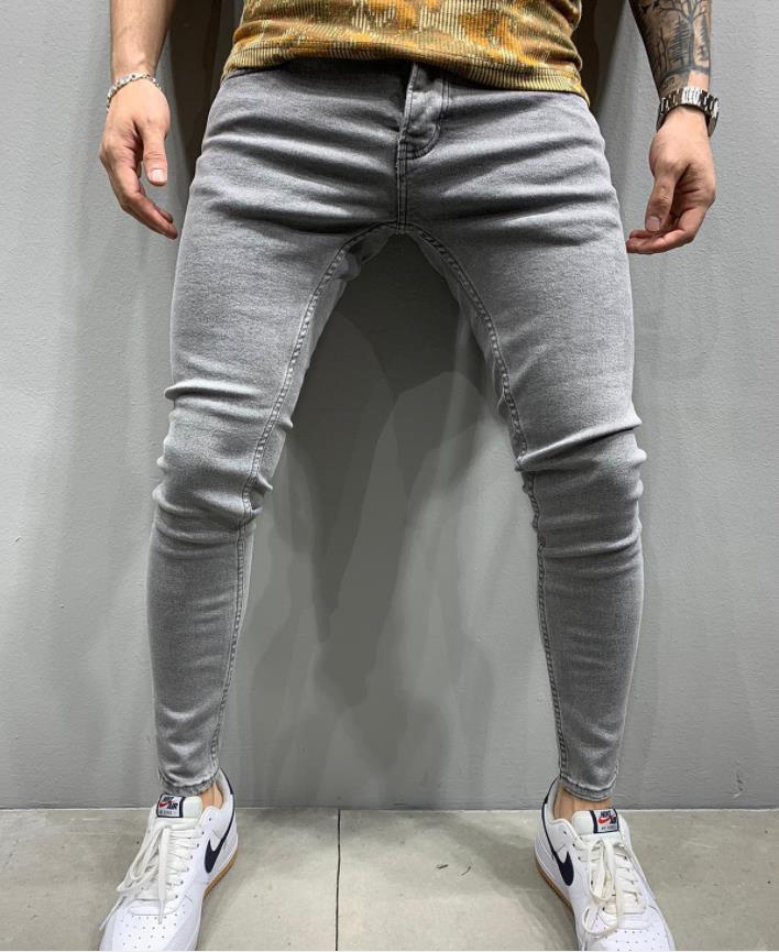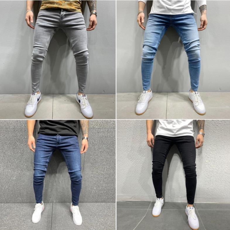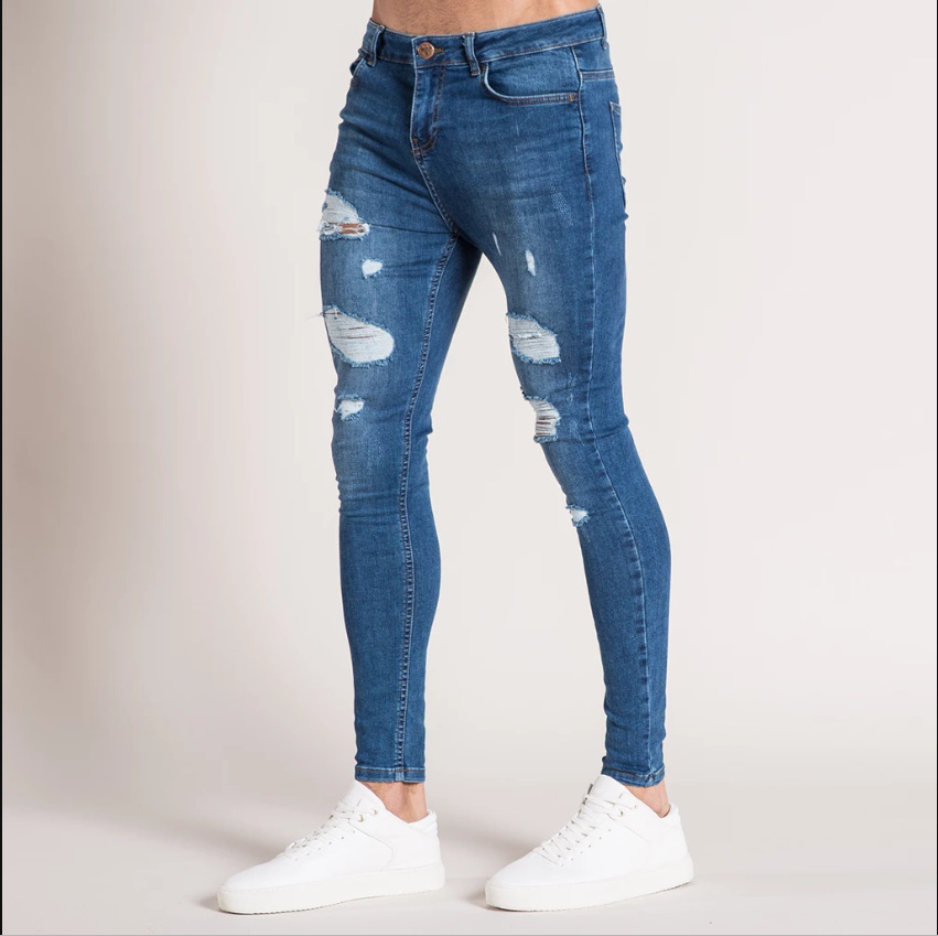 Cross-border European and American badge men's jeans, trendy knee ripped zipper skinny pants, ripped men's denim long pants