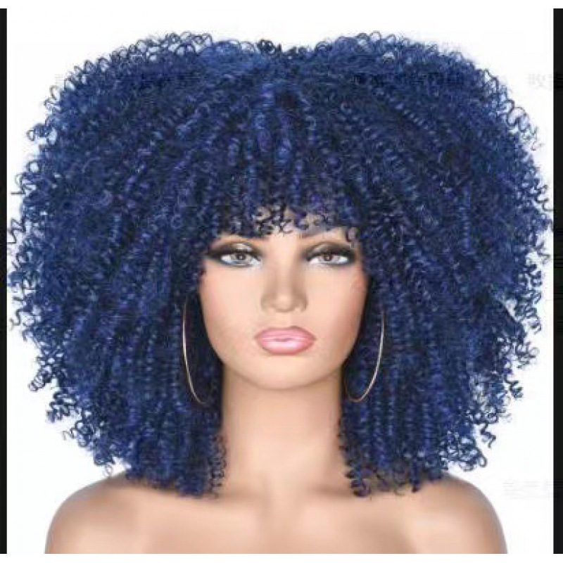 Cross-border European and American black chemical fiber women's hair manufacturer wigs African small curly hair explosion wig full head set