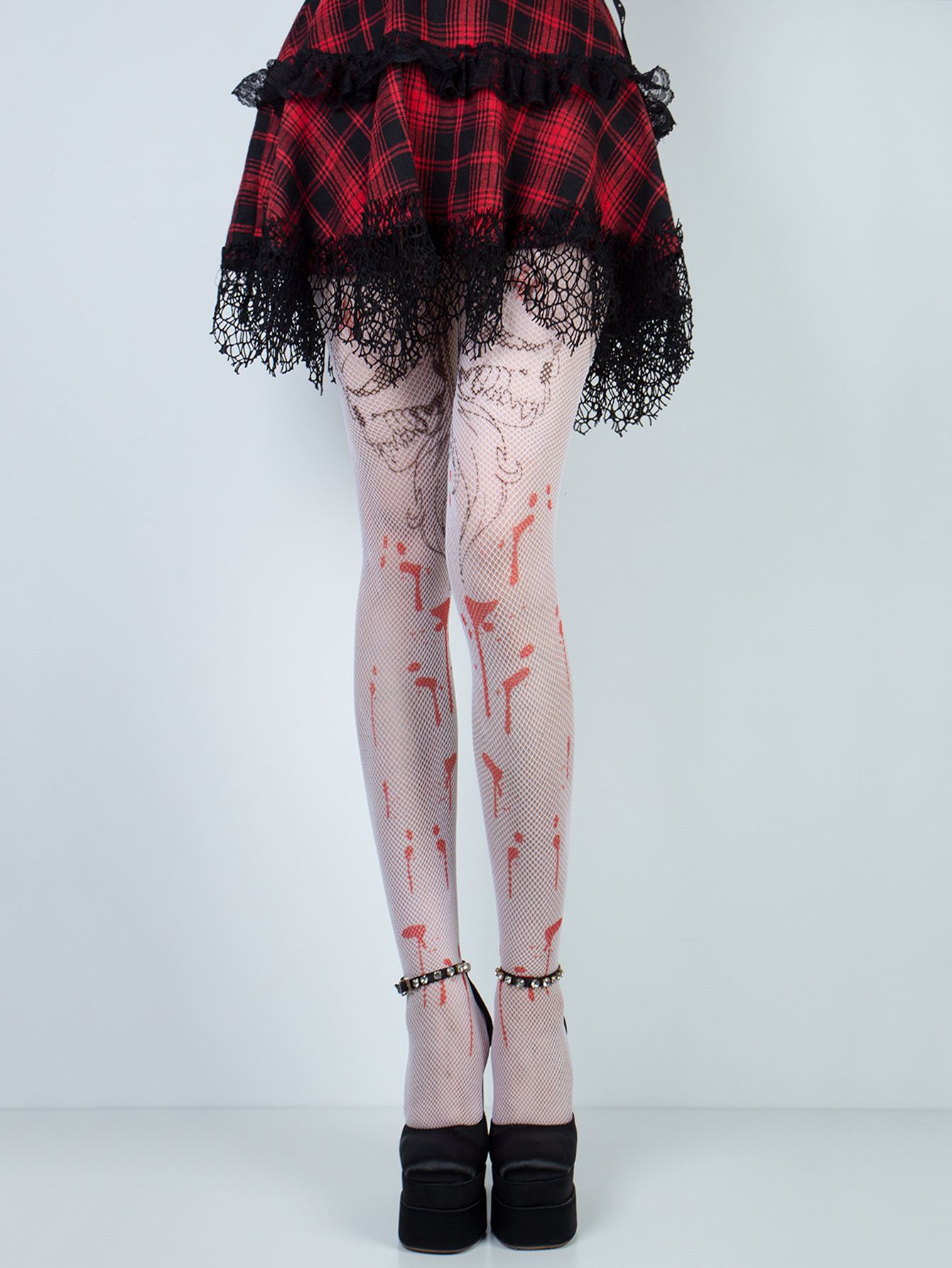 Cross-border European and American printed red blood ghost head small net white Halloween party base layer jumpsuit fishing net small mesh net sock