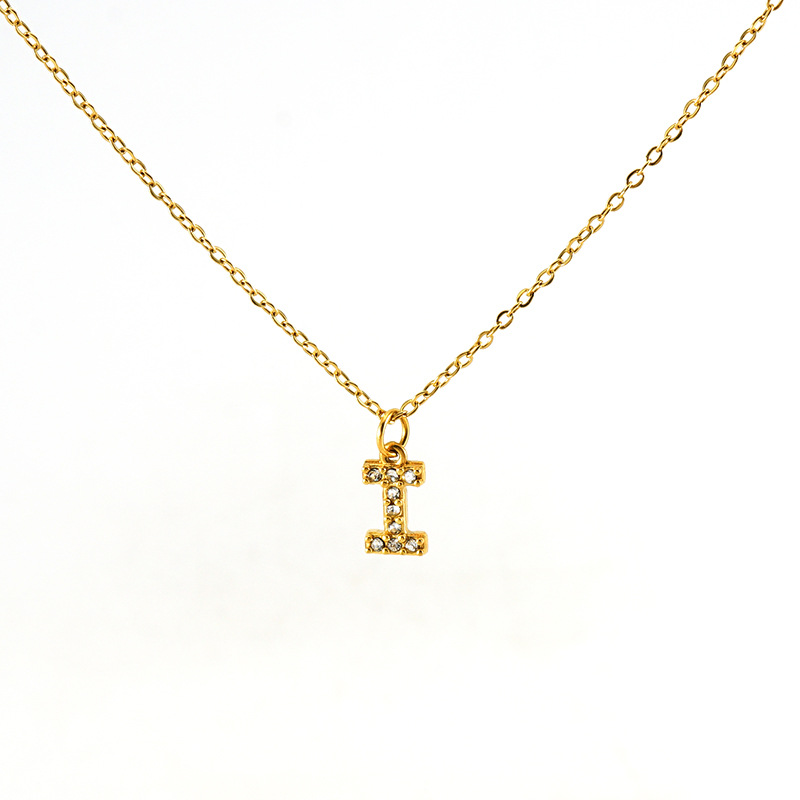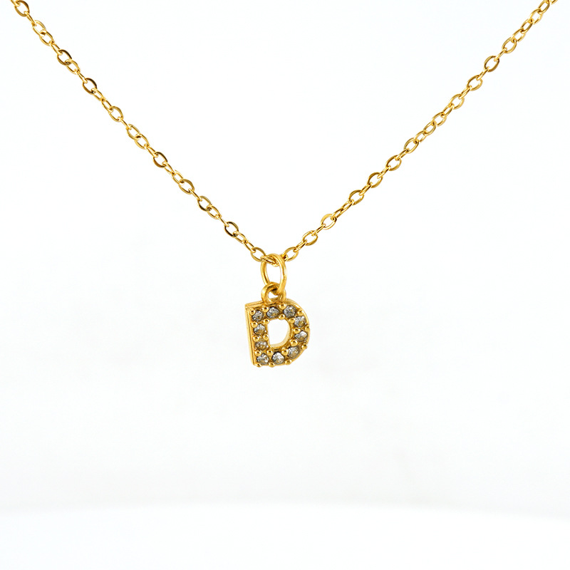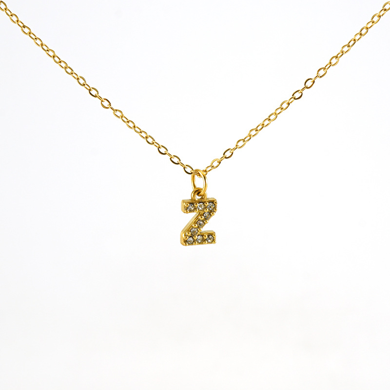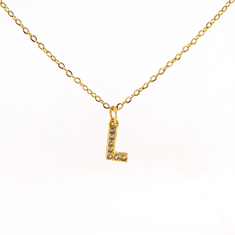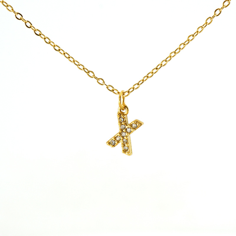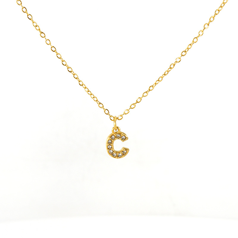 Cross-border European and American stainless steel fashion 26 English diamond-encrusted small letter necklace, simple and versatile collarbone chain in stock for women