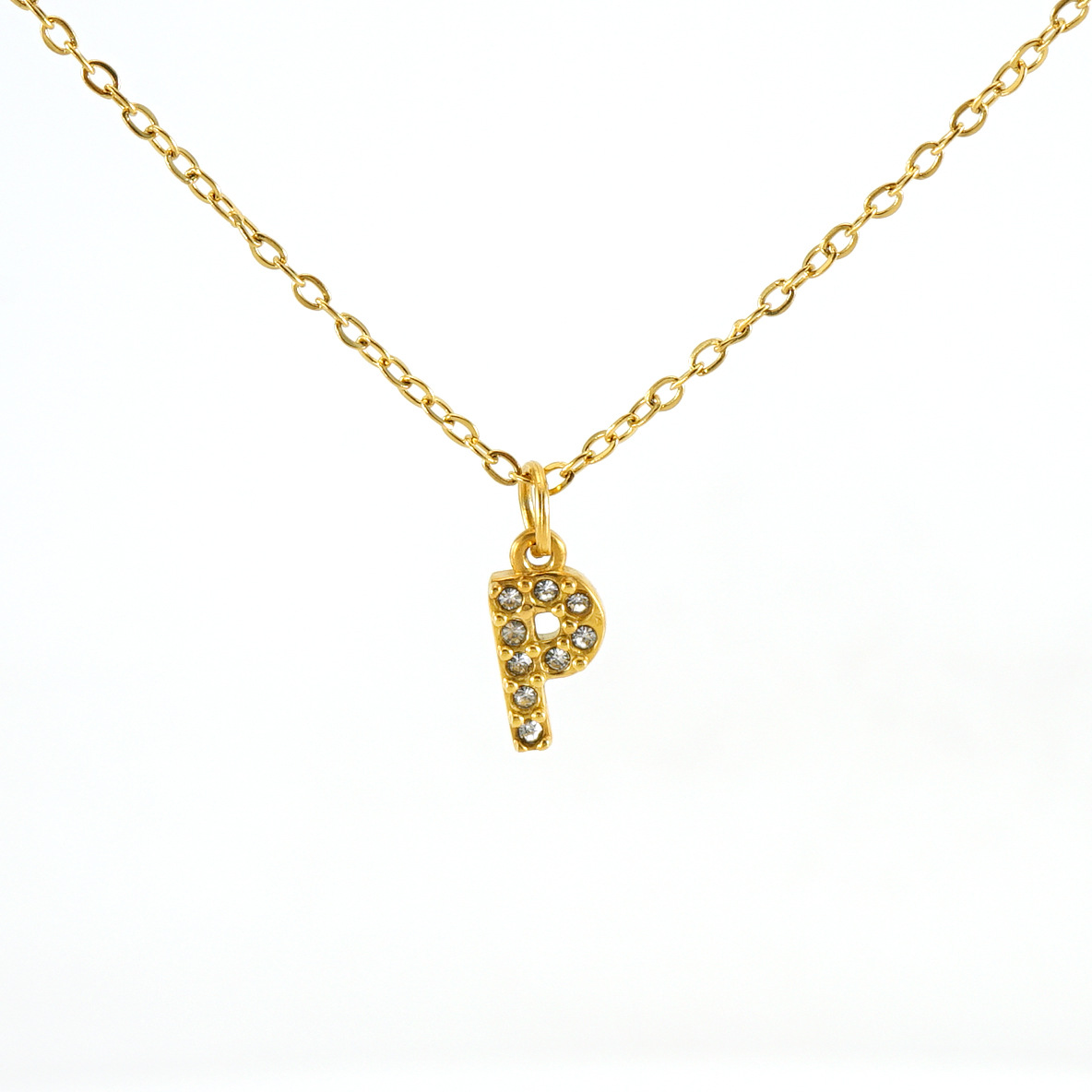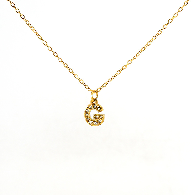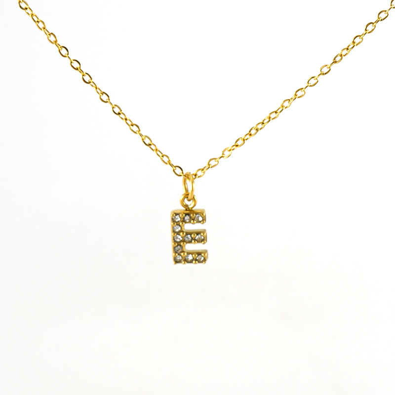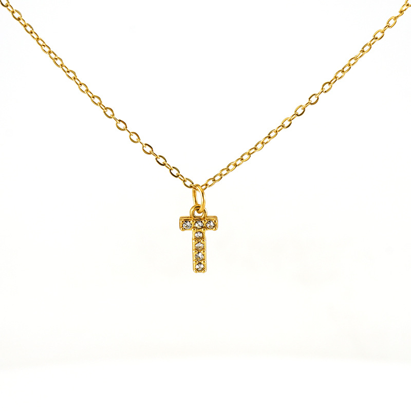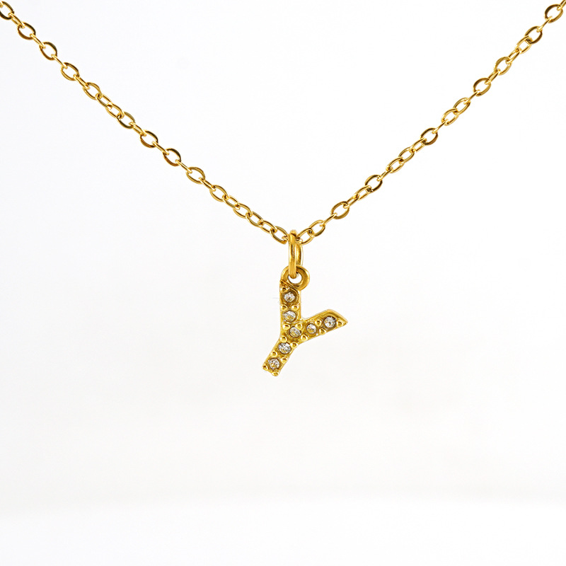 Cross-border European and American stainless steel fashion 26 English diamond-encrusted small letter necklace, simple and versatile collarbone chain in stock for women