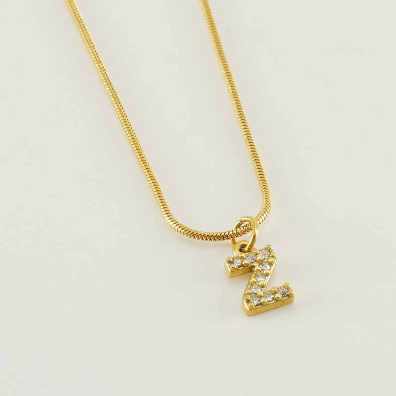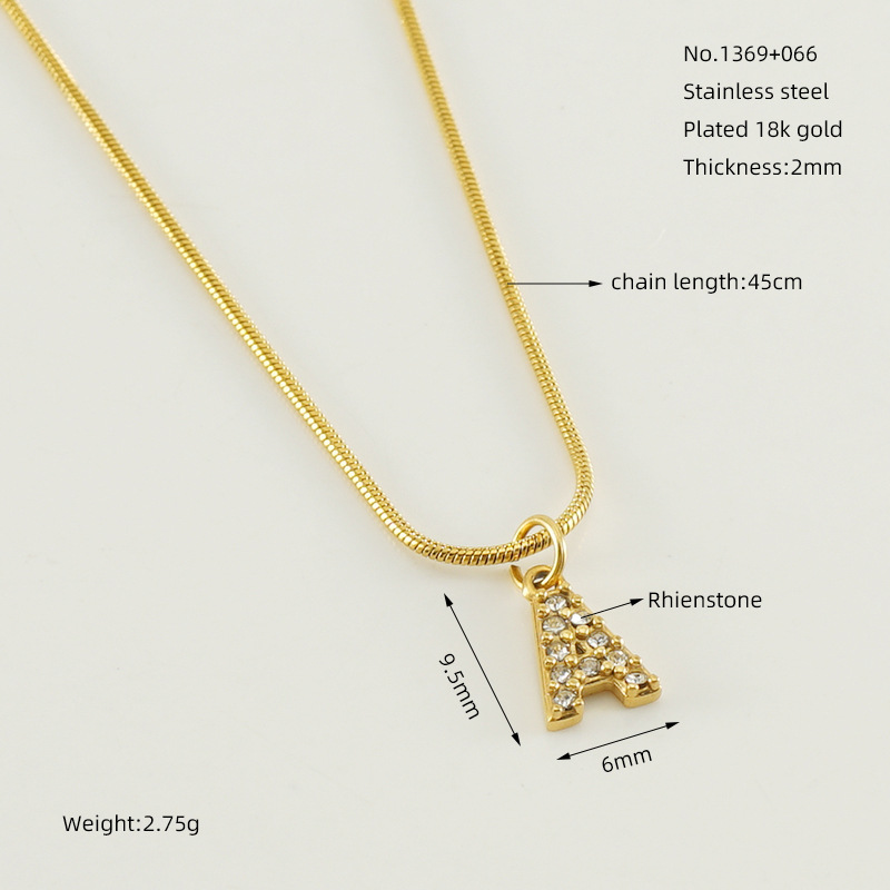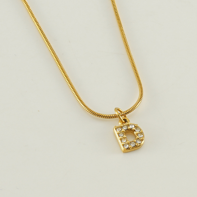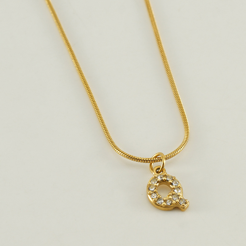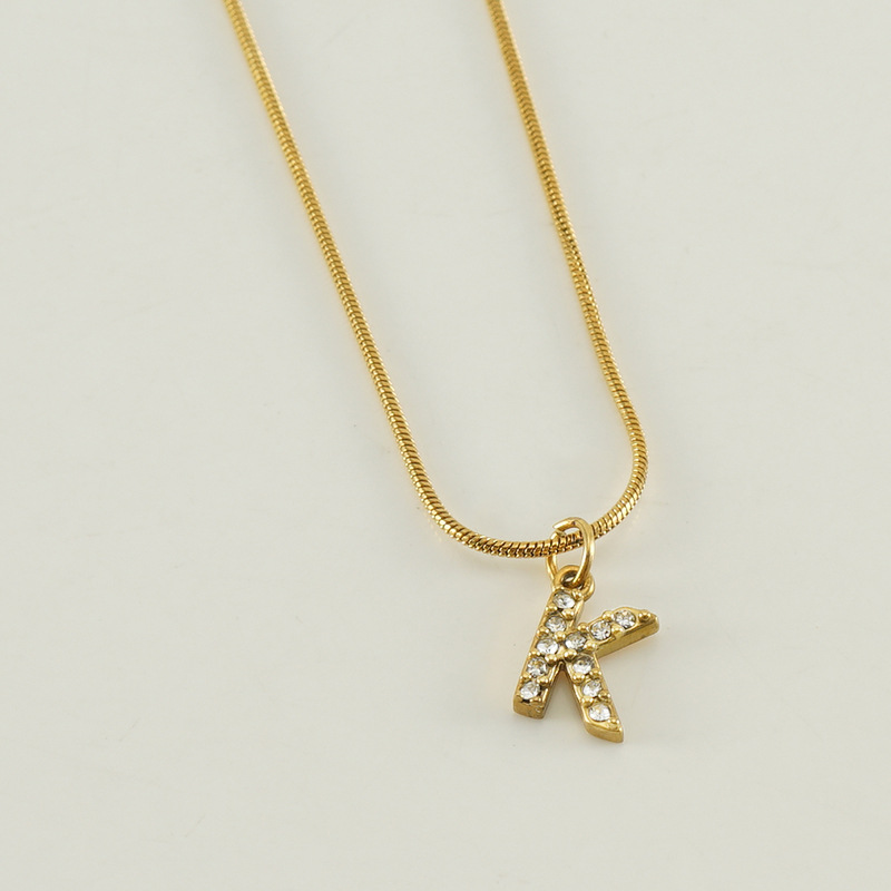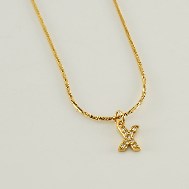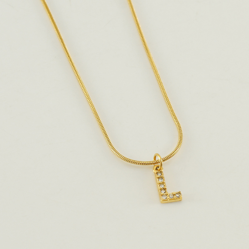 Cross-border European and American stainless steel fashion 26 English diamond-encrusted small letter necklace, simple and versatile titanium steel snake chain necklace for women