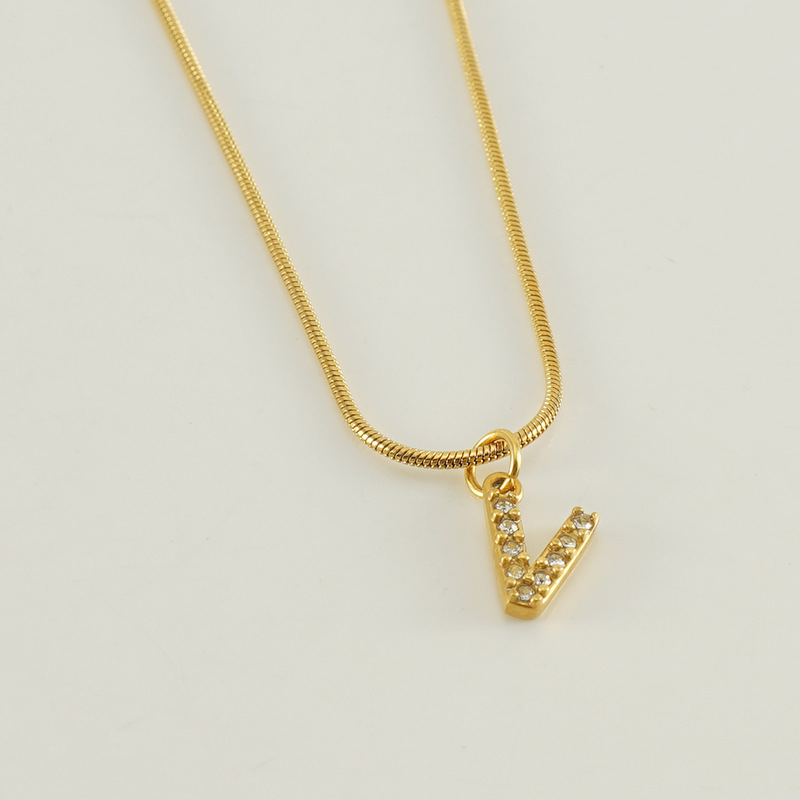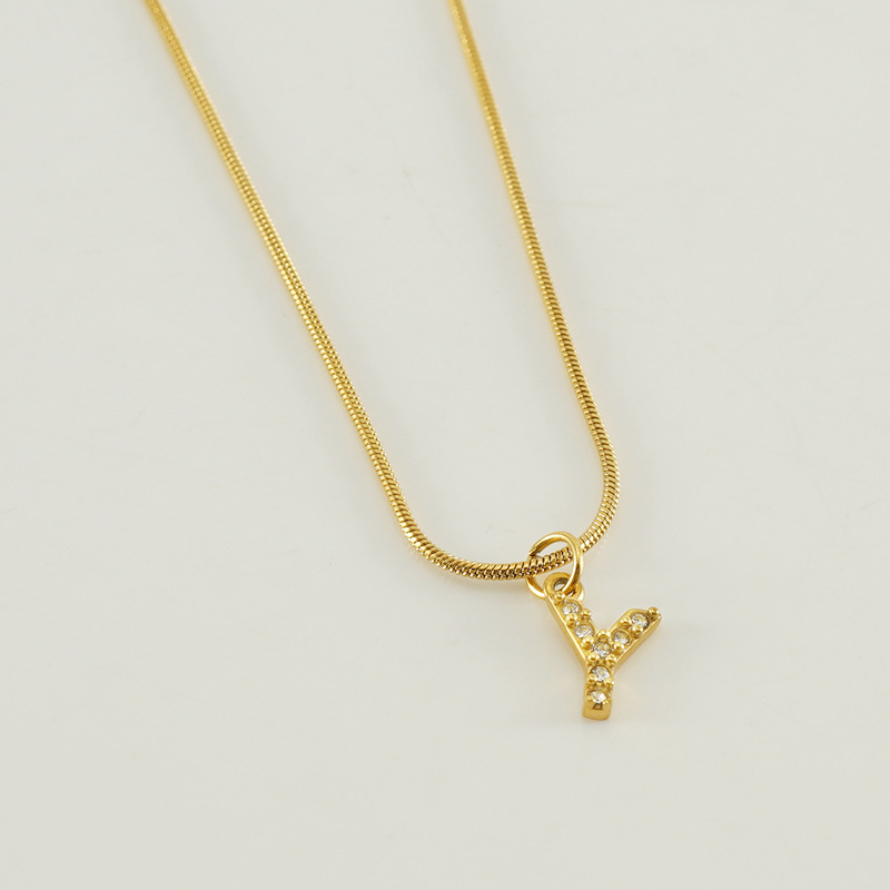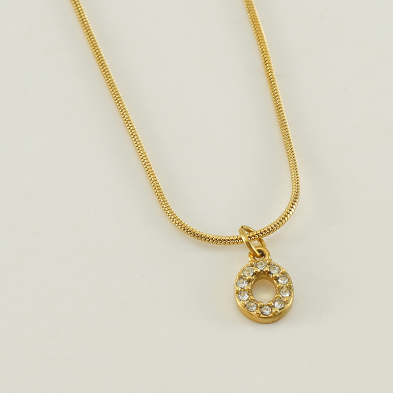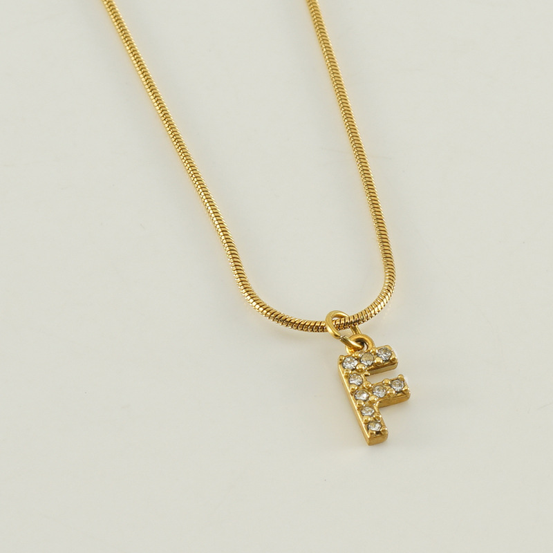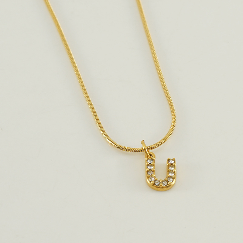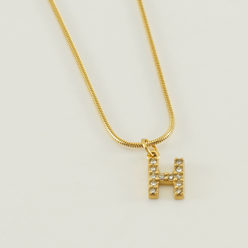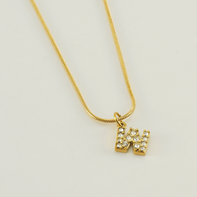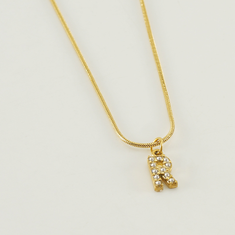 Cross-border European and American stainless steel fashion 26 English diamond-encrusted small letter necklace, simple and versatile titanium steel snake chain necklace for women
