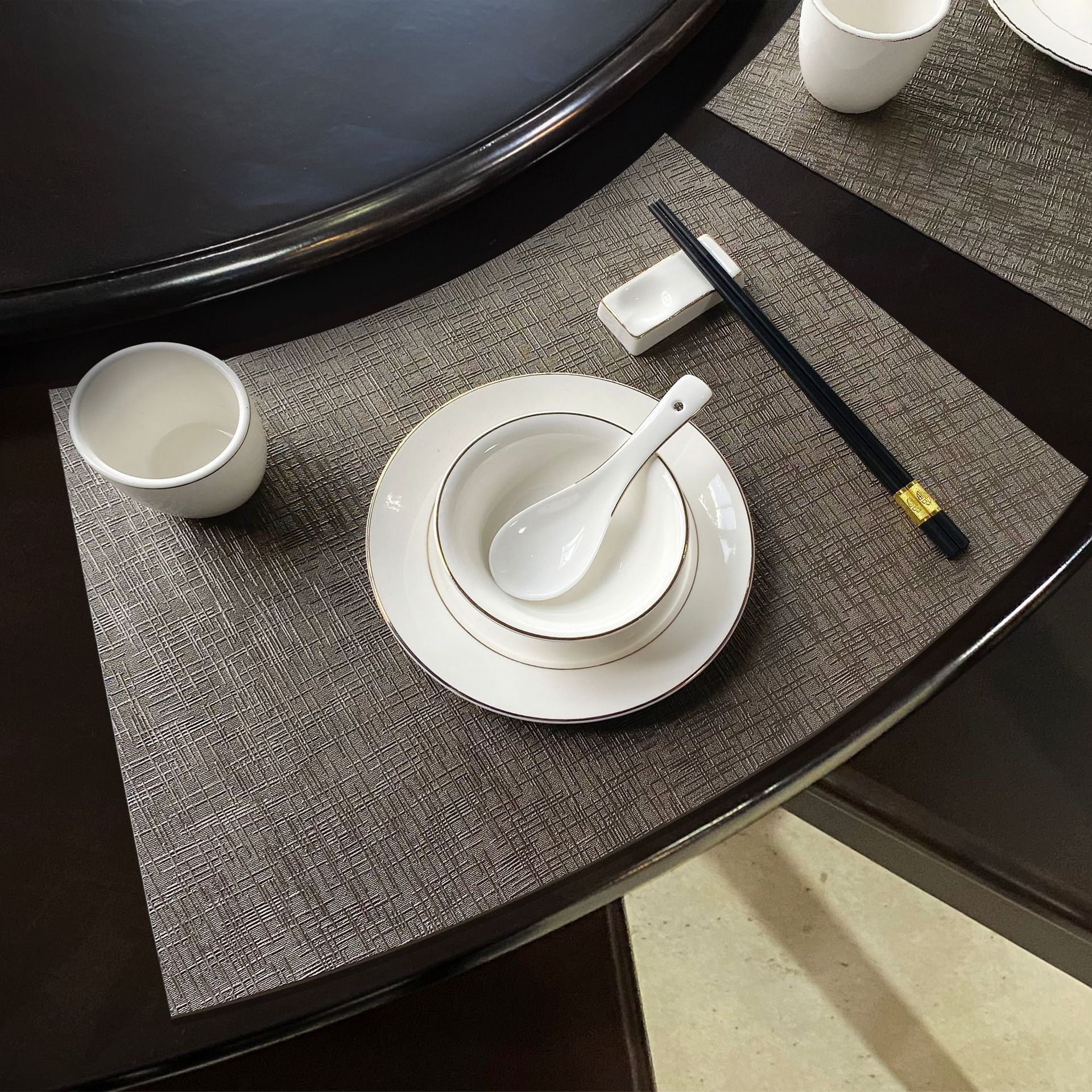 Cross-border European-style leather heat insulation pads, waterproof tray pads, metal texture double-sided square Western placemats, anti-slip table MATS