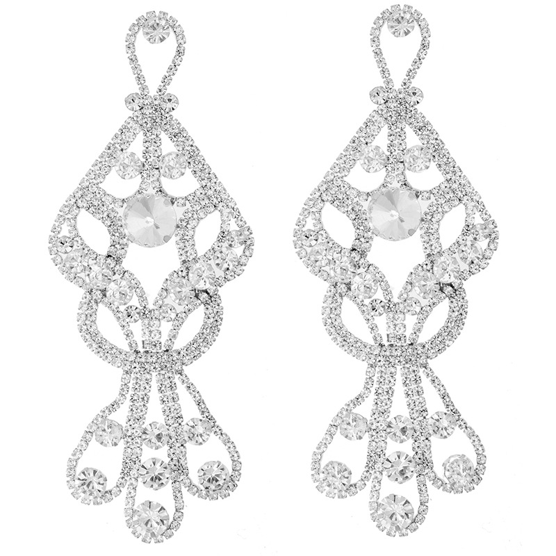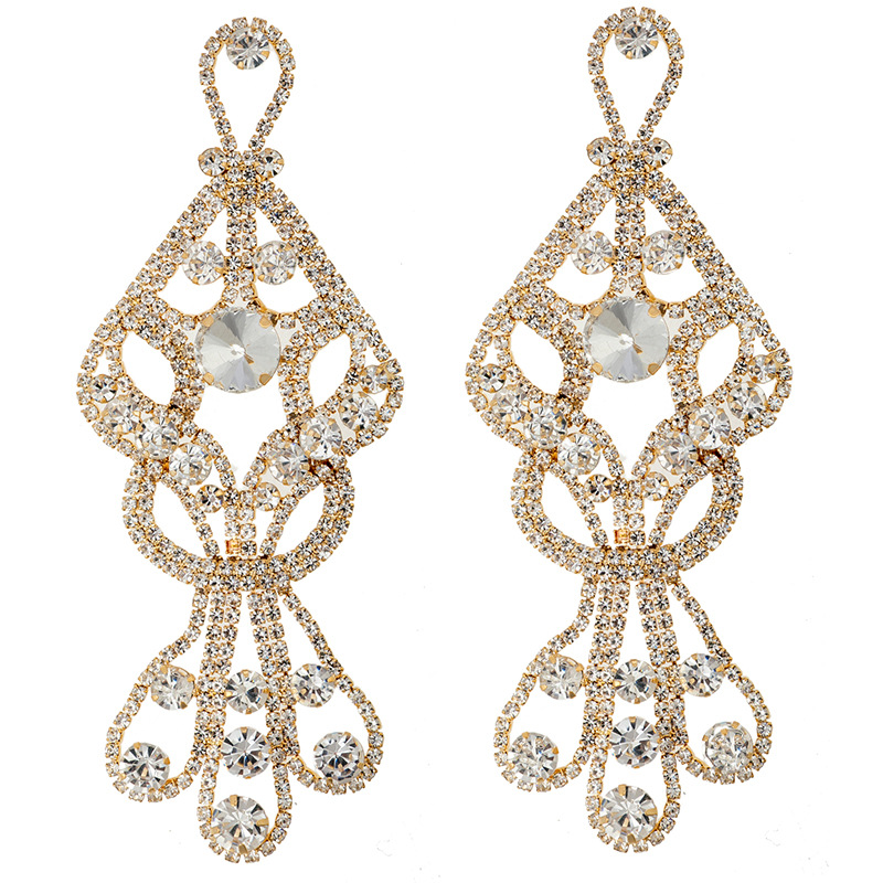 Cross-border exaggerated colored diamond earrings, European and American fashion AB diamond shiny long pendant design sense diamond-encrusted claw chain jewelry