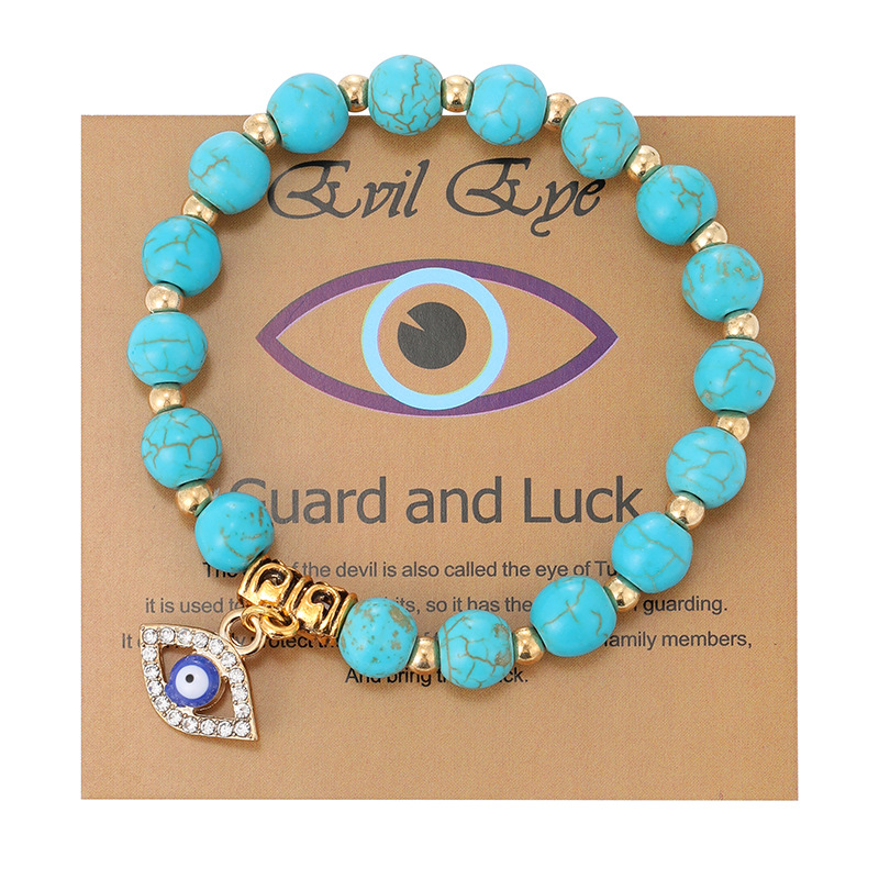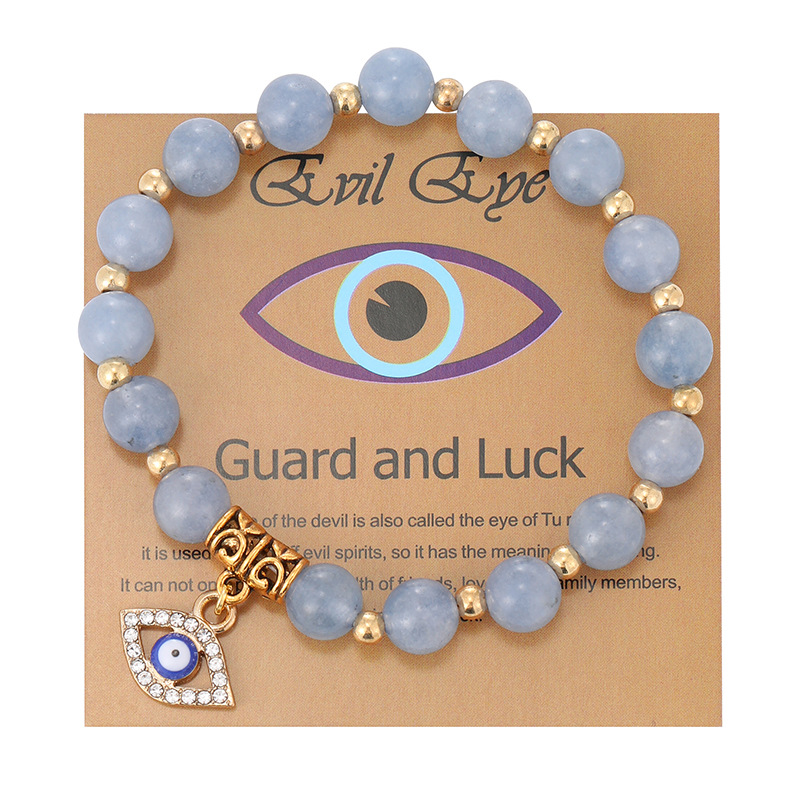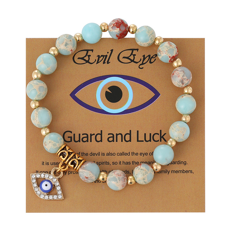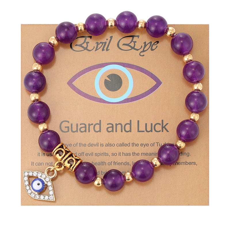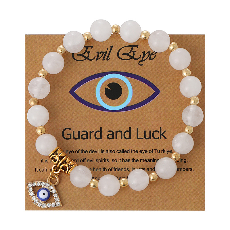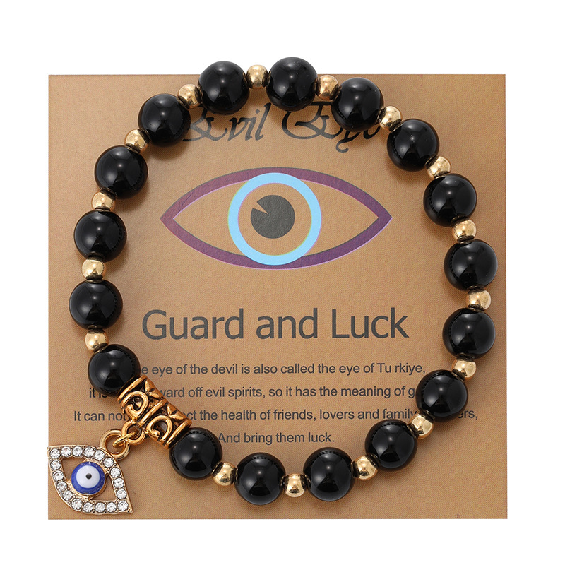 Cross-border exclusive 8mm pink zebra stone bracelet, Devil's Eye pendant bracelet, women's basketball eye card bracelet gift