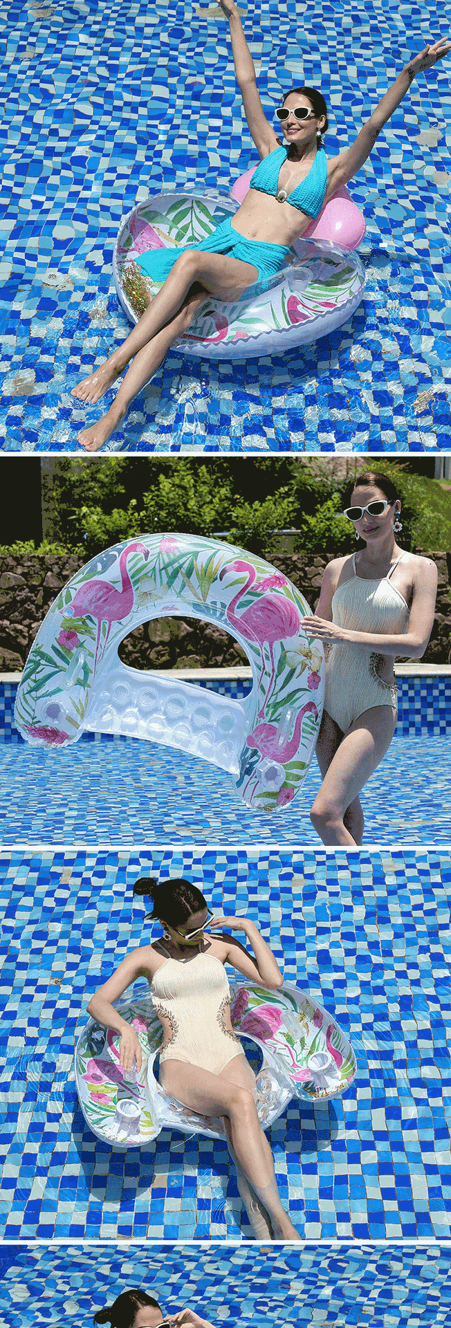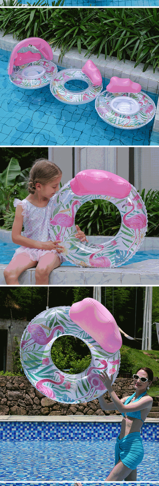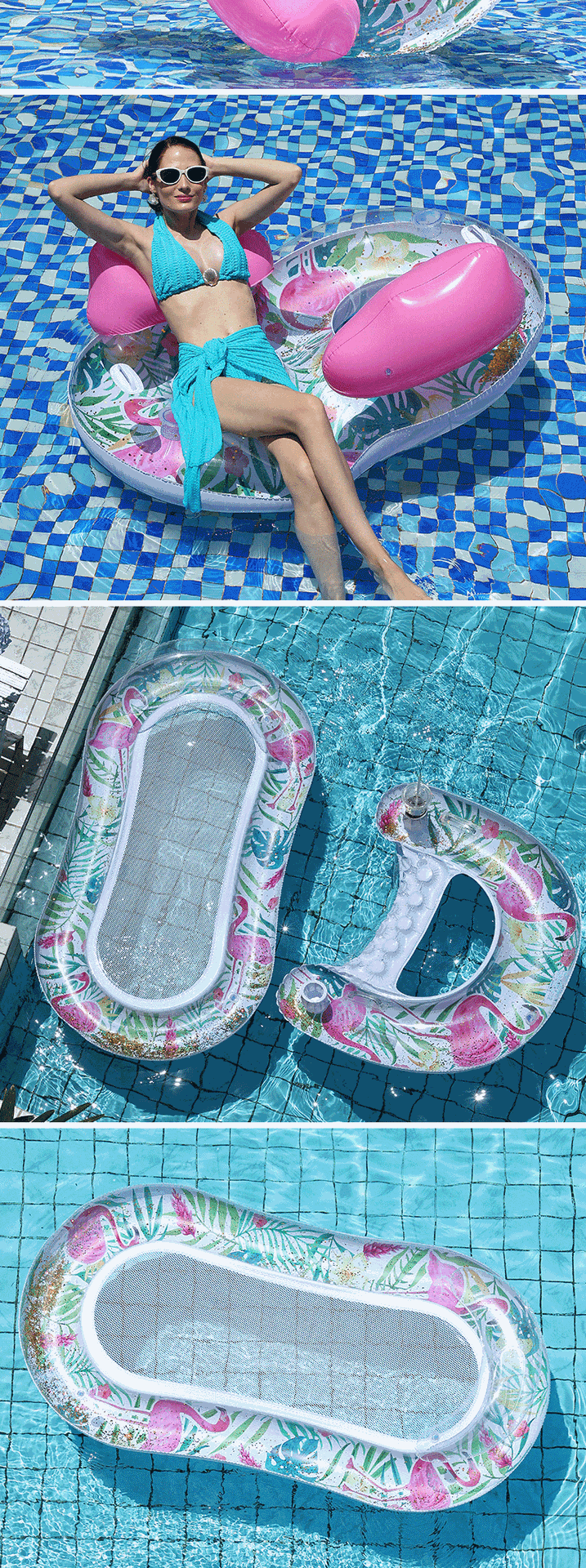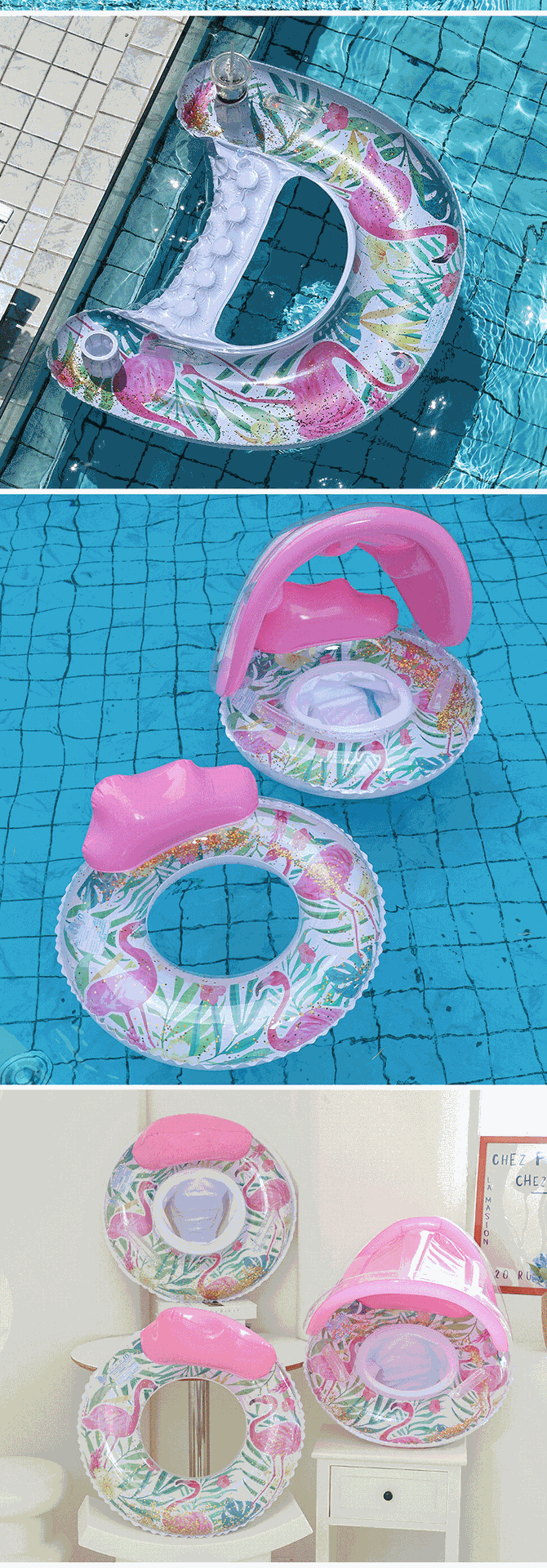 Cross-border exclusive flamingo adult swimming ring, sequined backrest, children's sitting ring, mesh fabric, water lounge chair, floating bed