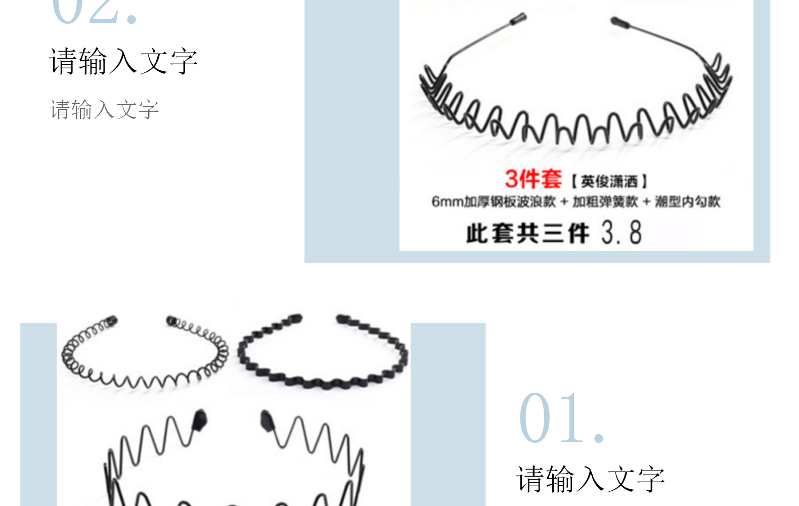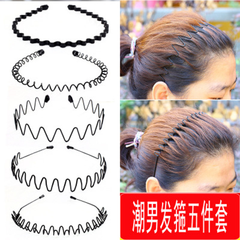 Cross-border exclusive wholesale of trendy men's hair bands, invisible sports Korean-style large headbands, wavy hair clips and accessory sets