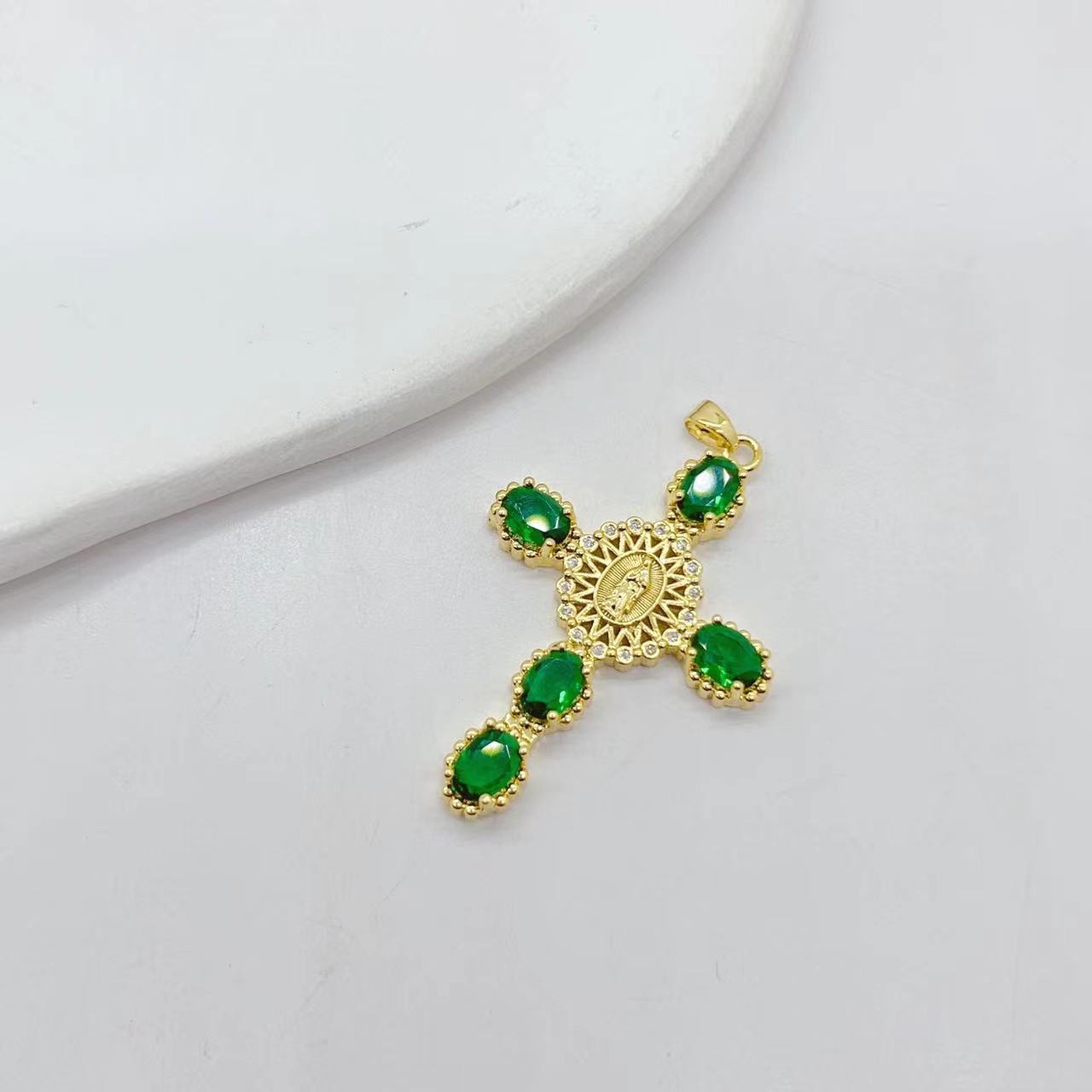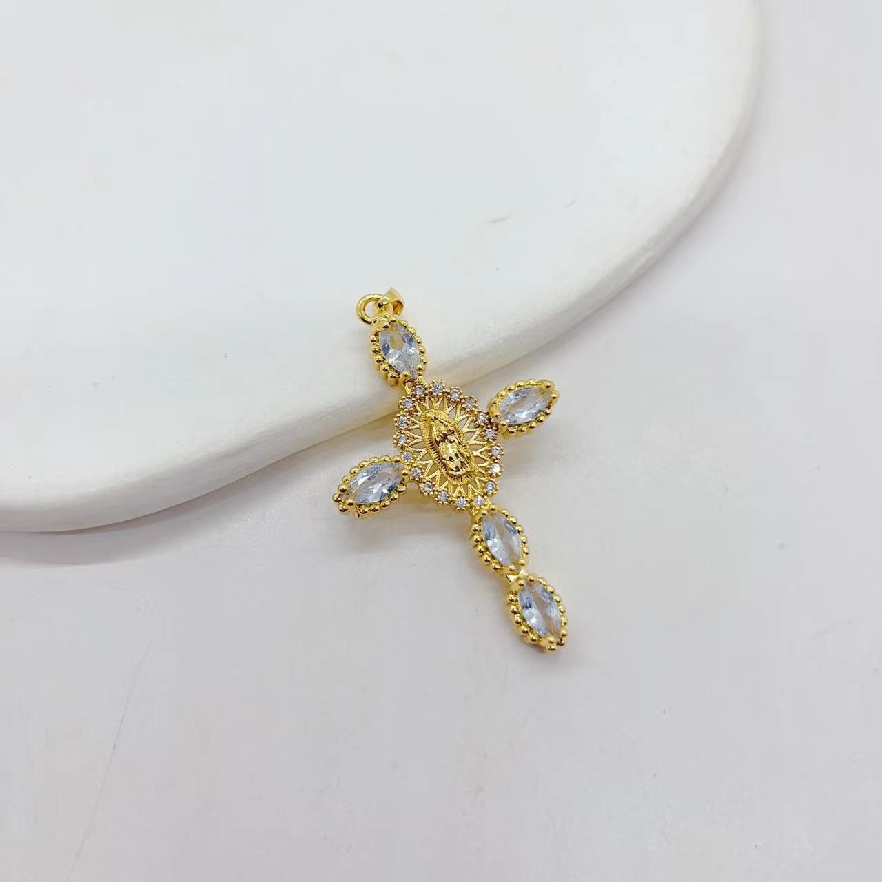 Cross-border fashion 18K gold copper-plated zircon Virgin Mary Cross pendant DIY copper zircon bracelet necklace accessory