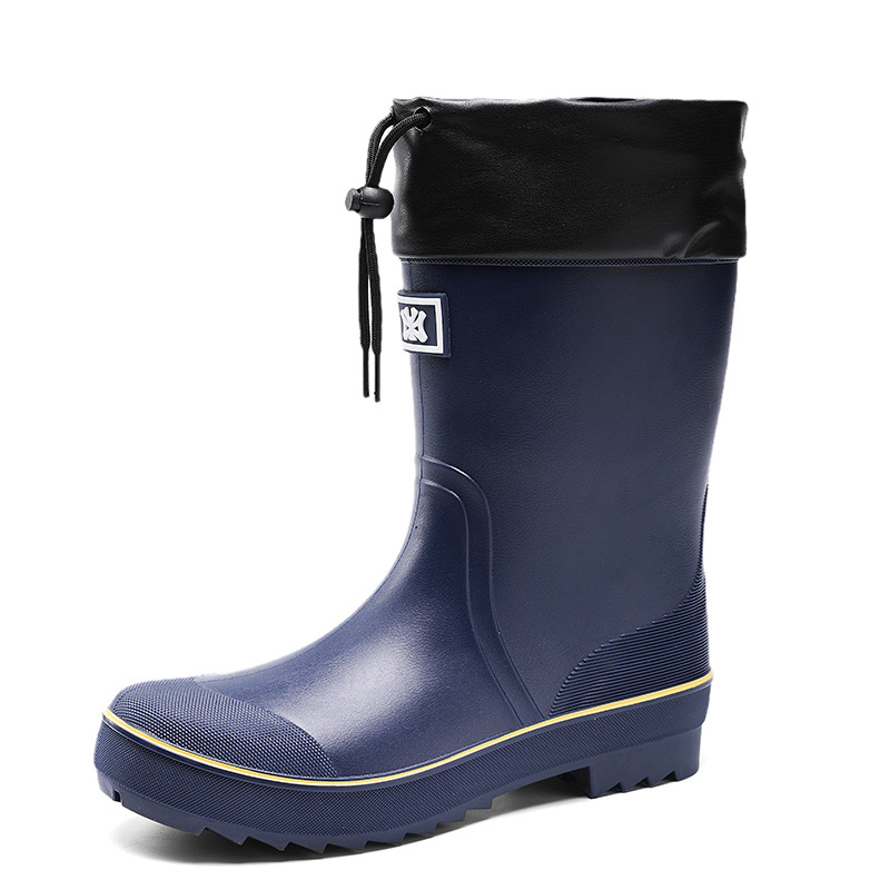 Cross-border fashion European and American rain boots, men's fashion outerwear thick-soled waterproof fishing shoes, waterproof fabric mouth elastic waterproof shoes
