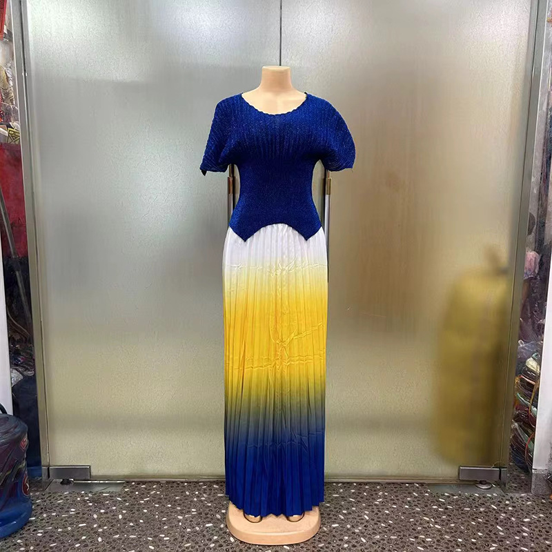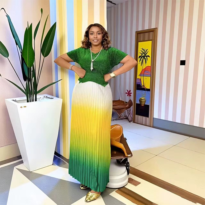 Cross-border Foreign Trade 2025 Fashionable and Elegant EU Women's Clothing Two-piece Set, Pleated Spring/Summer puffed sleeve plus-size women's Clothing set