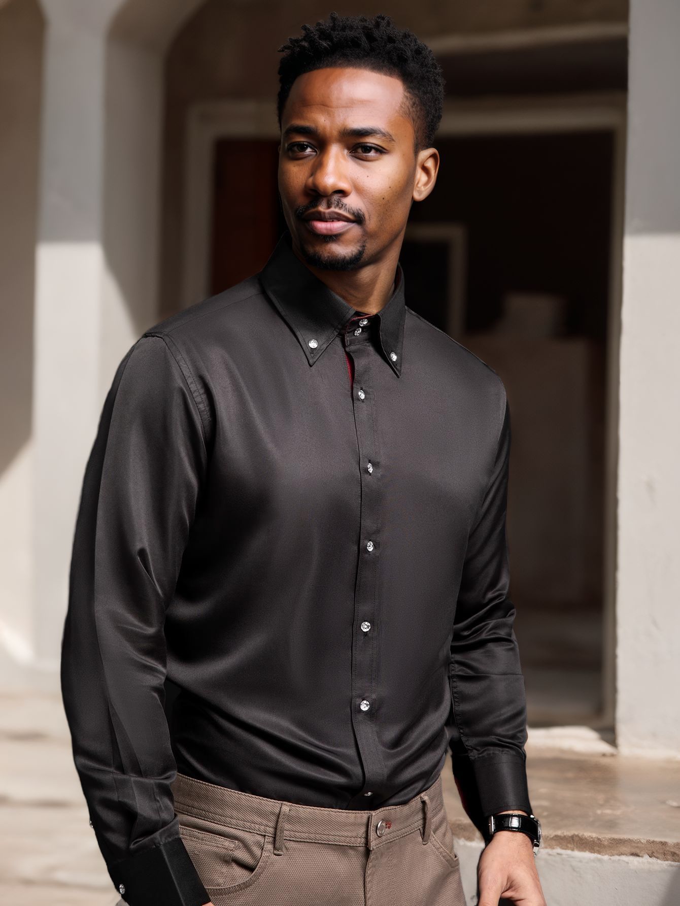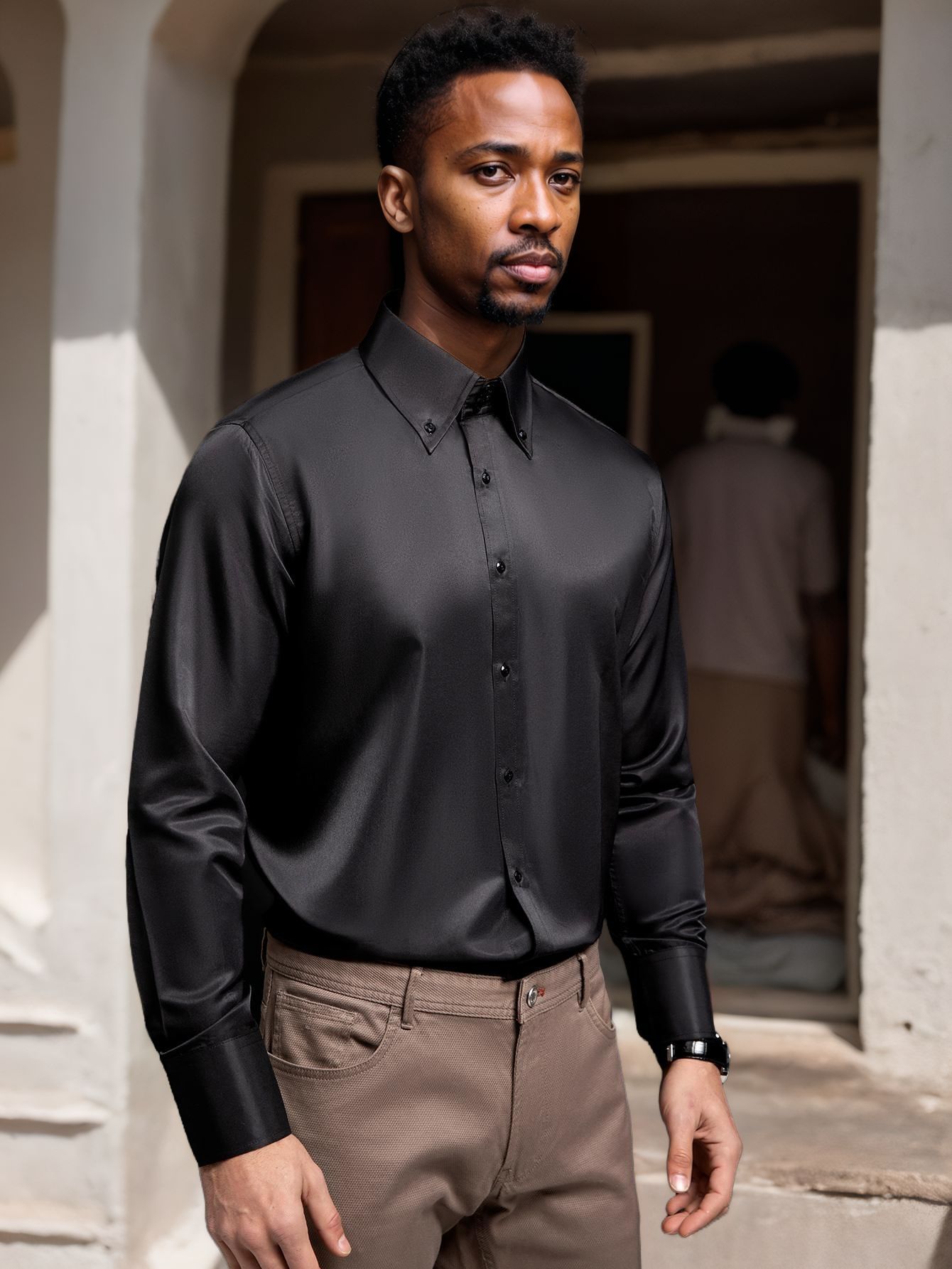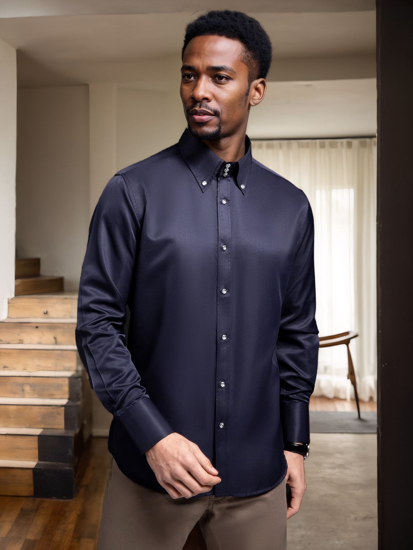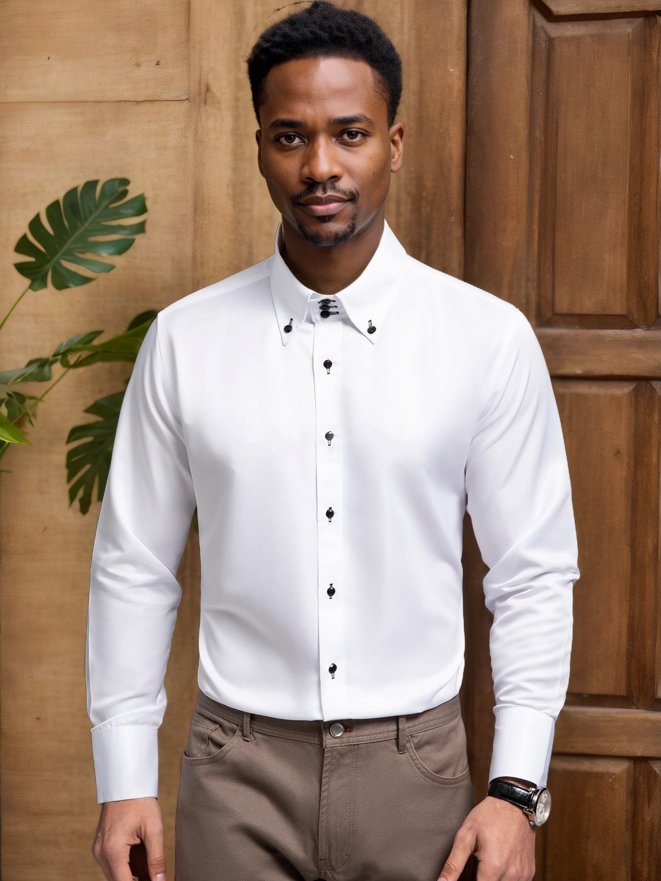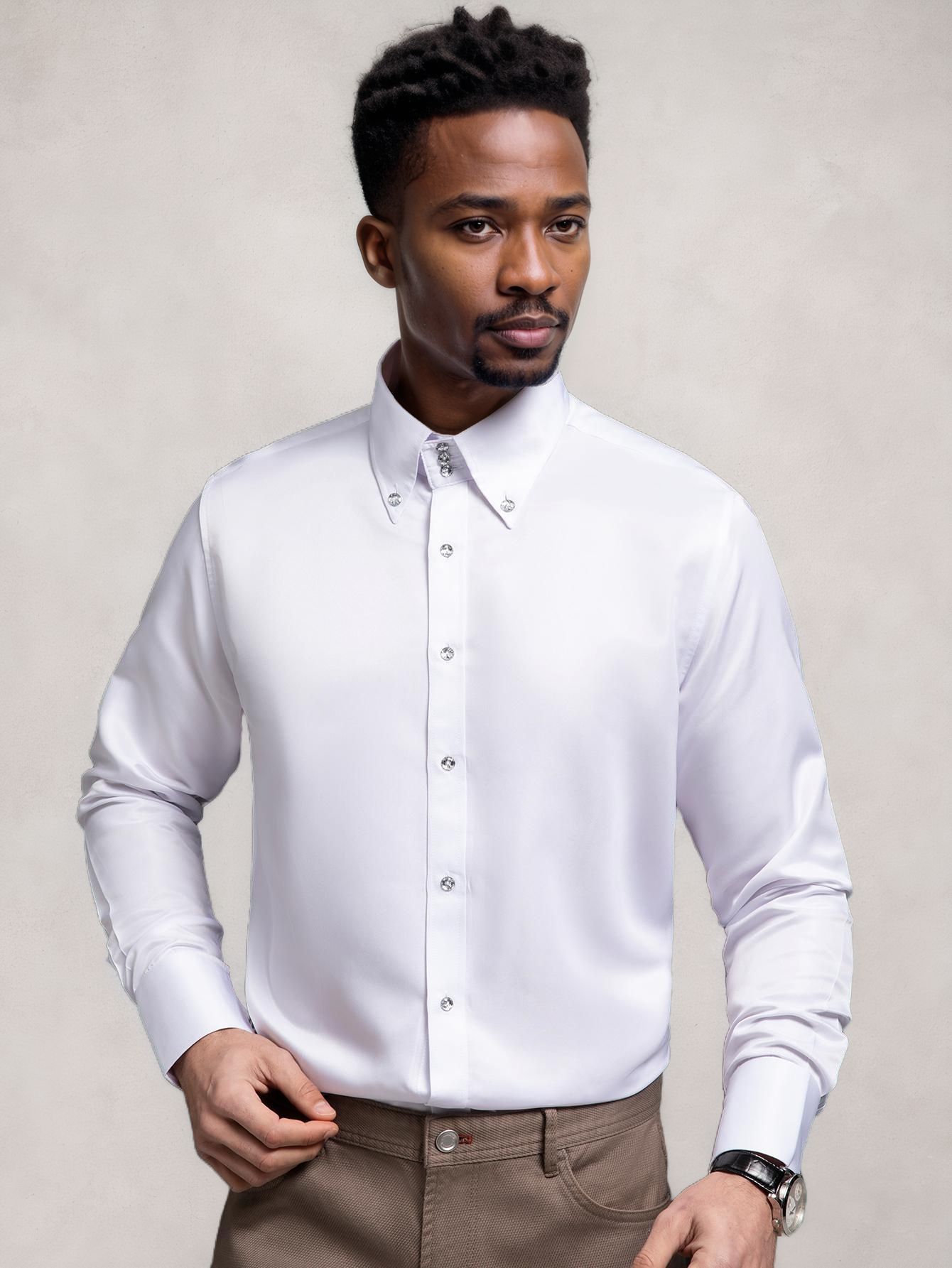 Cross-border foreign trade pointed-neck shirt for men, European size crystal buckle plain men's shirt, high-neck men's shirt, long-sleeved evening dress shirt