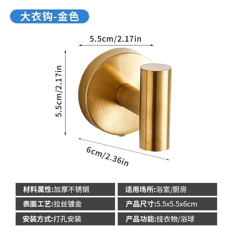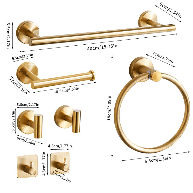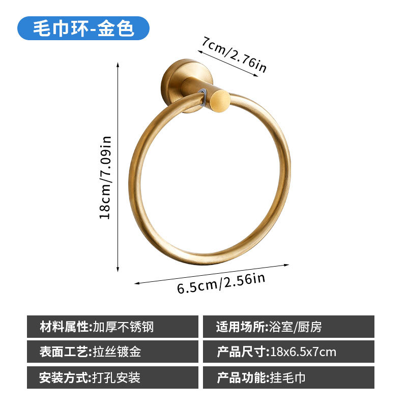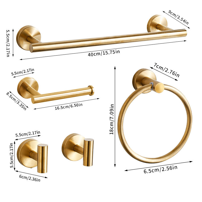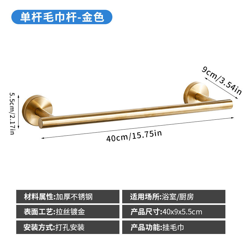 Cross-border foreign trade stainless steel towel bar set, bathroom hardware hanging accessories 5-piece set, towel bar toilet stand wall-mounted