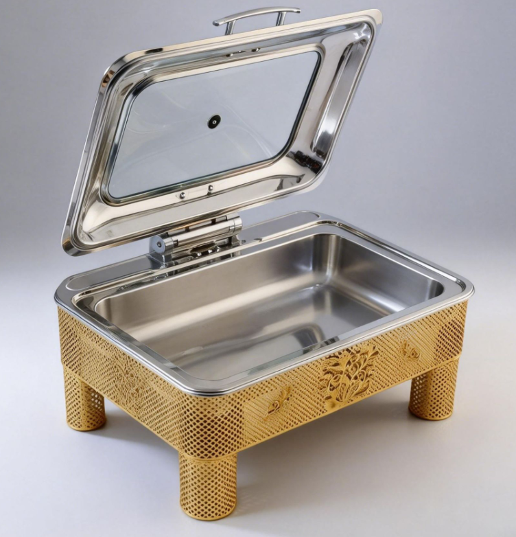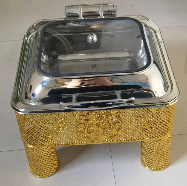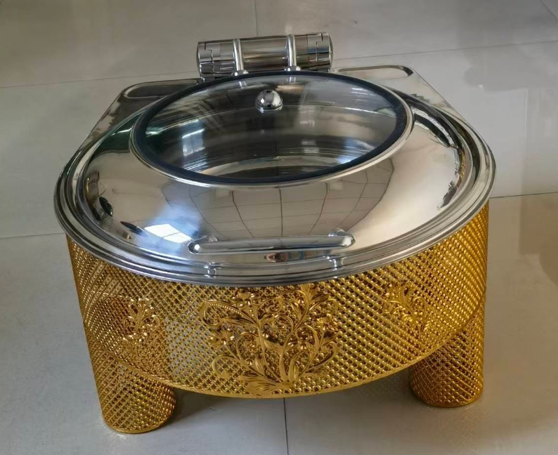 Cross-border golden stainless steel alcohol heating luxury Buffet stove, wedding banquet flip cover commercial alcohol stove, buffet stove