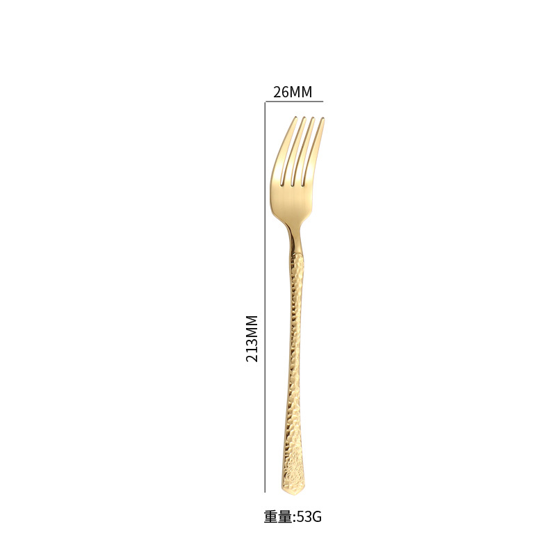 Cross-border hammer-patterned stainless steel knives, forks and spoons, high-end and light luxury dining spoons and forks, gold-plated steak knives, elegant Western dining gift tableware